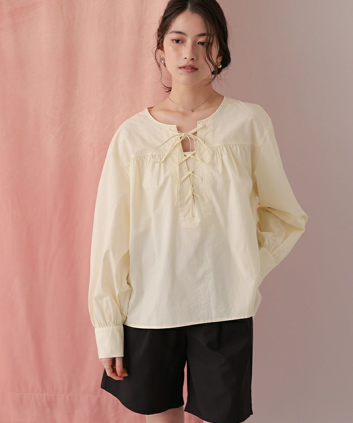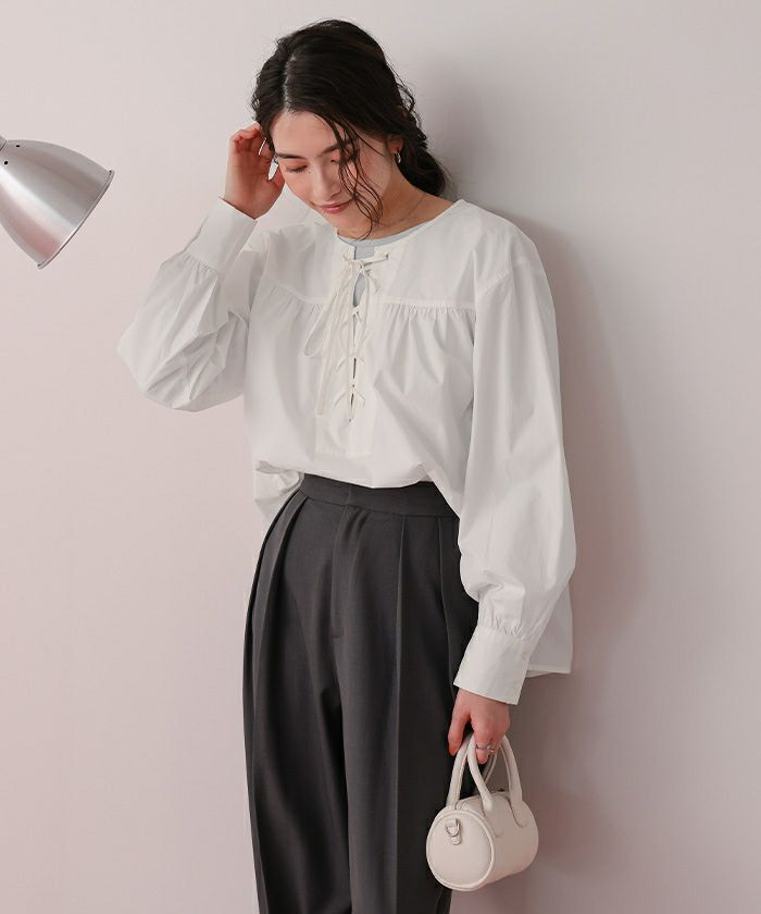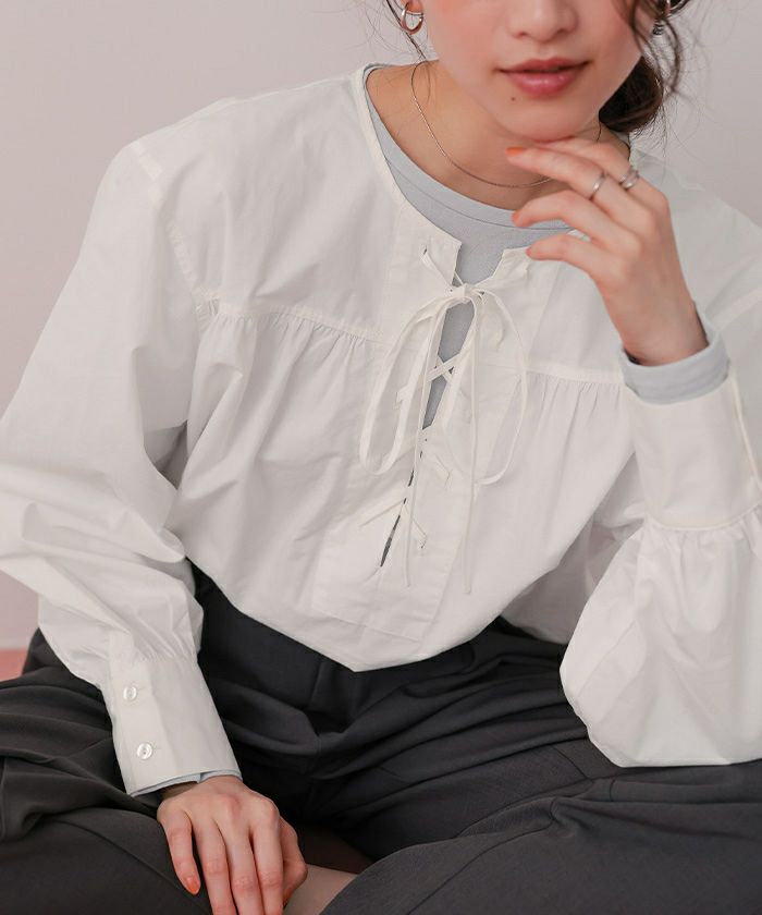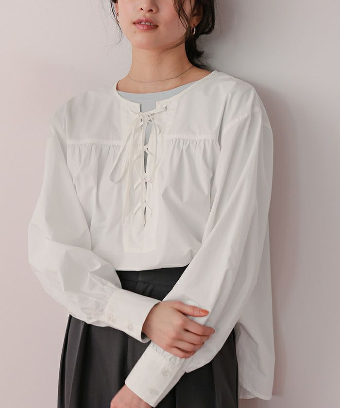 ・1枚でさらっと首元の抜け感を出して着ても、カットソーとのレイヤードを楽しむのも◎