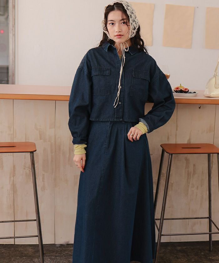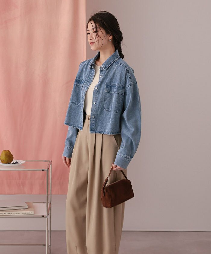 ・柔らかく軽やかなデニム素材で、ジャケット感覚でもブラウス感覚でも着られる万能アイテム