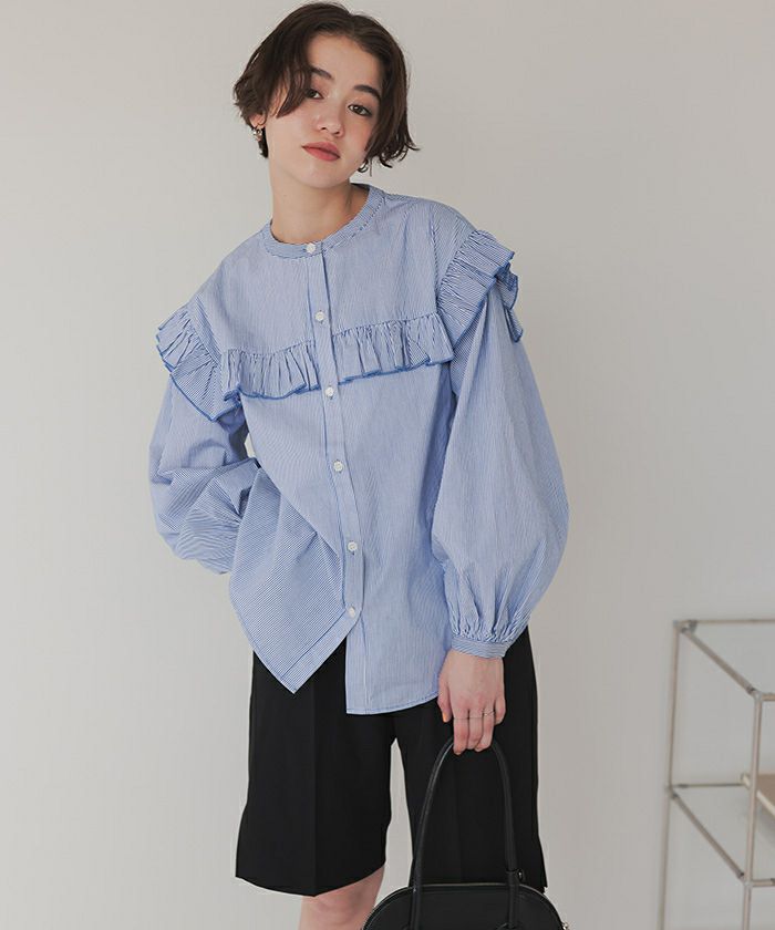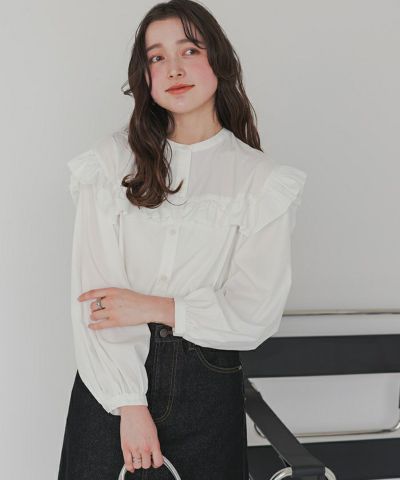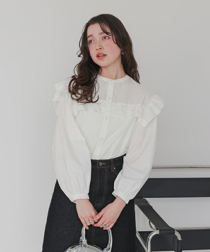 ・ボリューム感にこだわった袖シルエットとフリルディテールが可愛い長袖ブラウス。