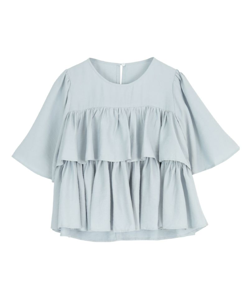 とても綺麗なブルーでした。パンツはもちろん、丈が長くないのでスカートとも合わせられます。2段のフリルが華やかで、お腹が隠せて嬉しいです。  ただシワが気になり、お洗濯の度にアイロンが必要なので少し面倒かな…