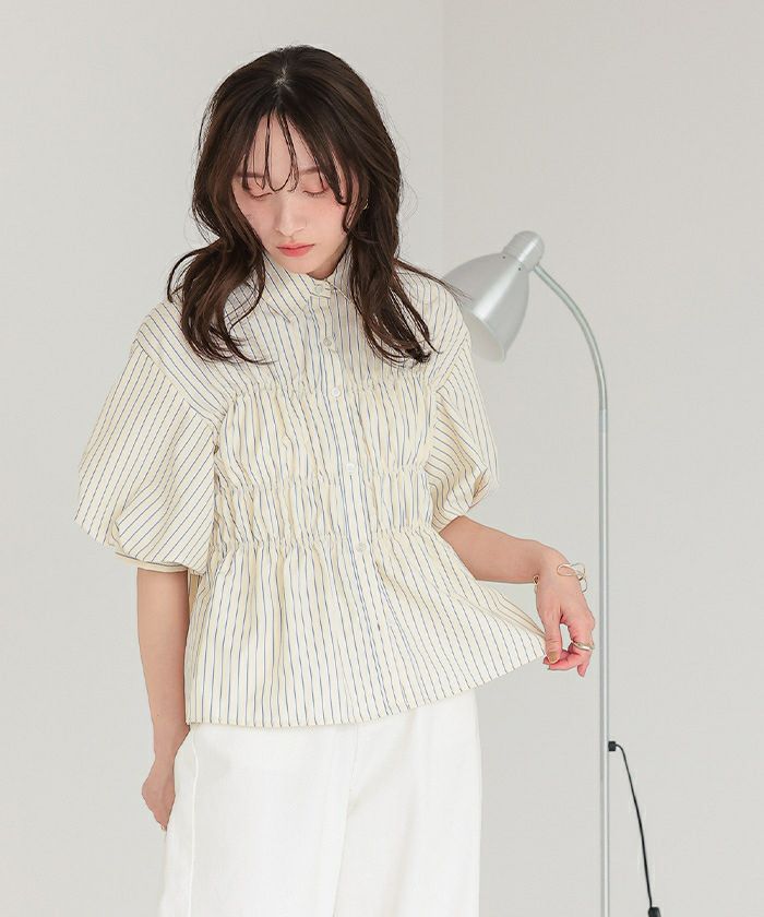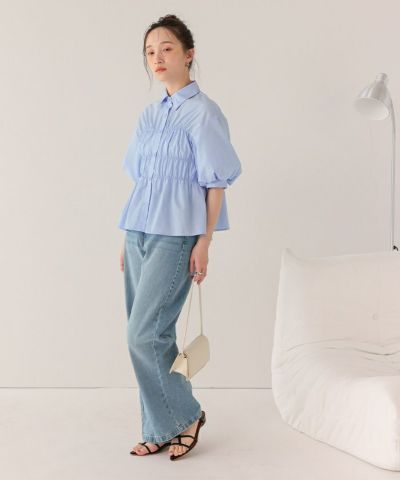 ・ふんわりとしたバルーンスリーブがポイント。1枚でトレンド感のあるスタイリングが完成