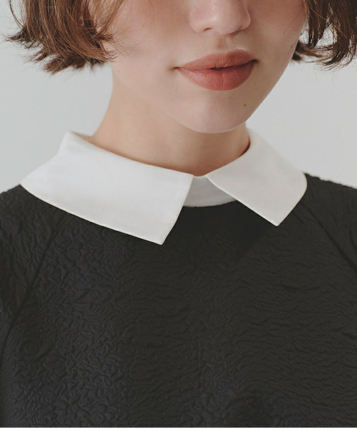 ・襟はつけ襟なのでボタンでの取り外しが可能◎セレモニーシーンでも、襟を外して普段使いもできるので、綺麗めにもカジュアルにも合わせられる万能トップス。