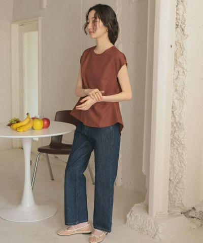 ・さらりとしたリネンライクなタッチの素材感が綺麗見えするトップス。
