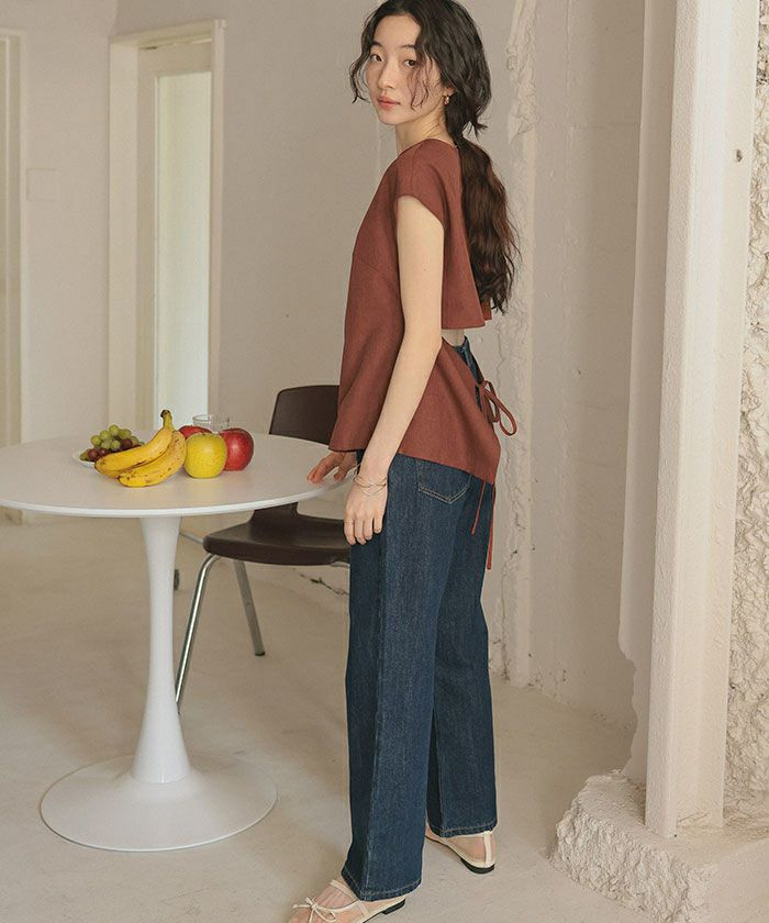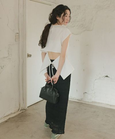 ・後ろリボンで結ぶ仕様になっており、レディなディテールのあるトップスに。