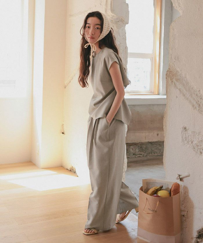 リネンライクツータックワイドパンツ