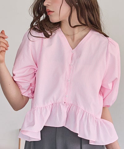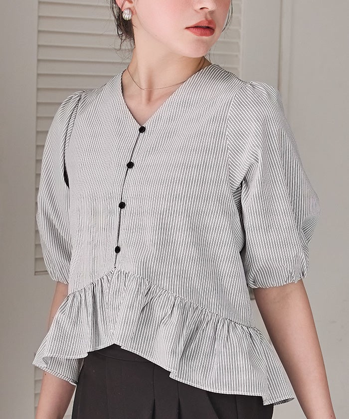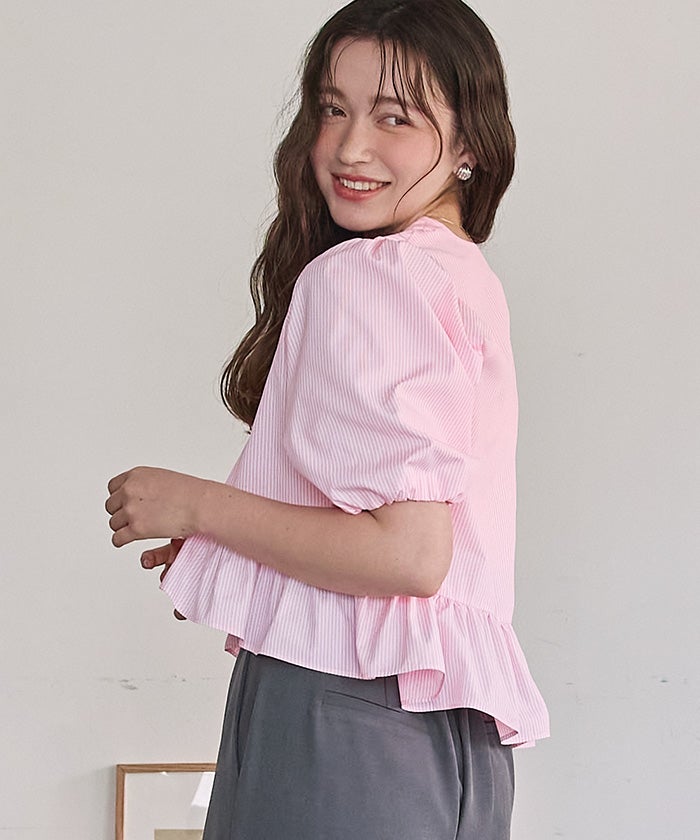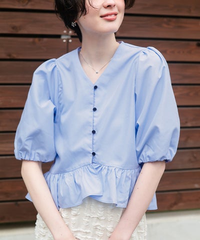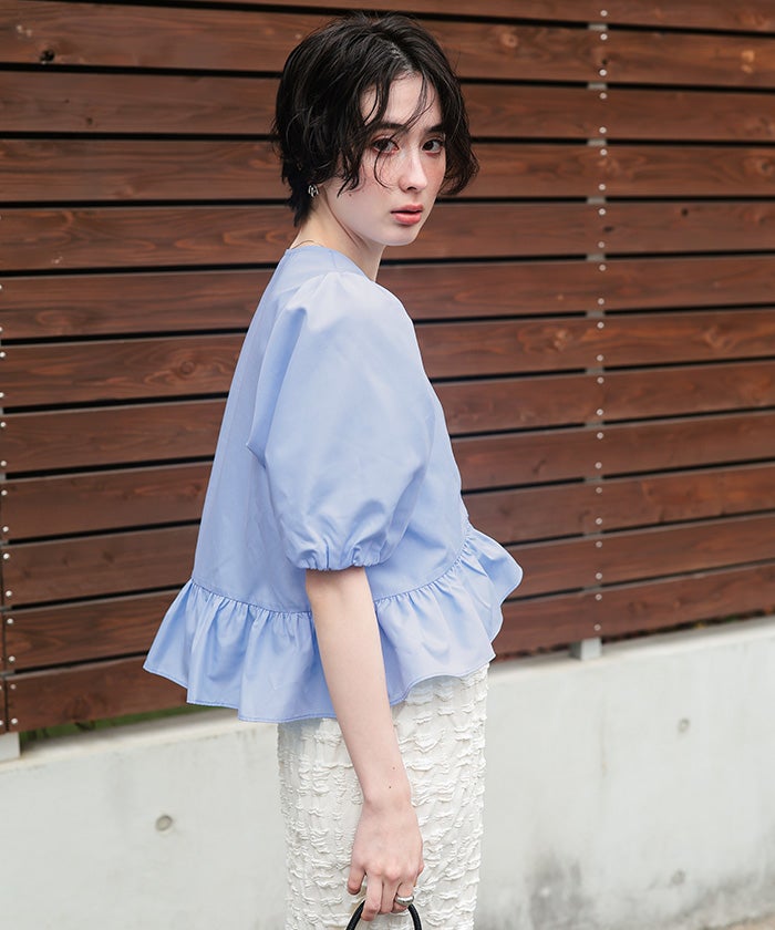 ・立体感のあるシルエットが魅力の、ペプラムデザインブラウス