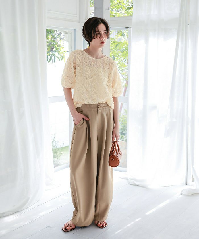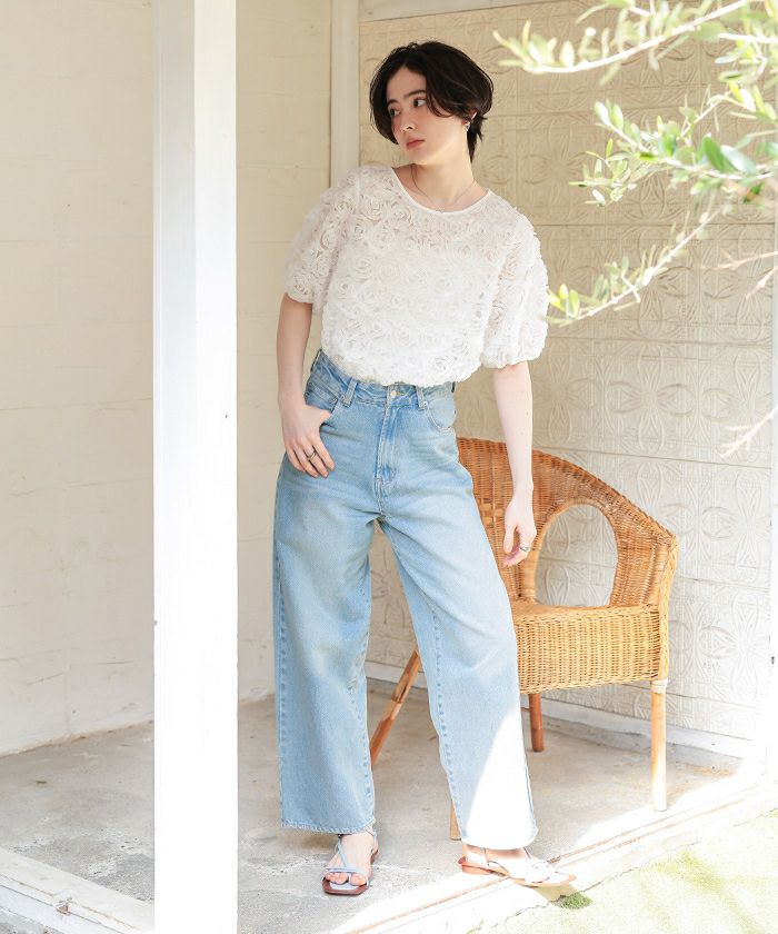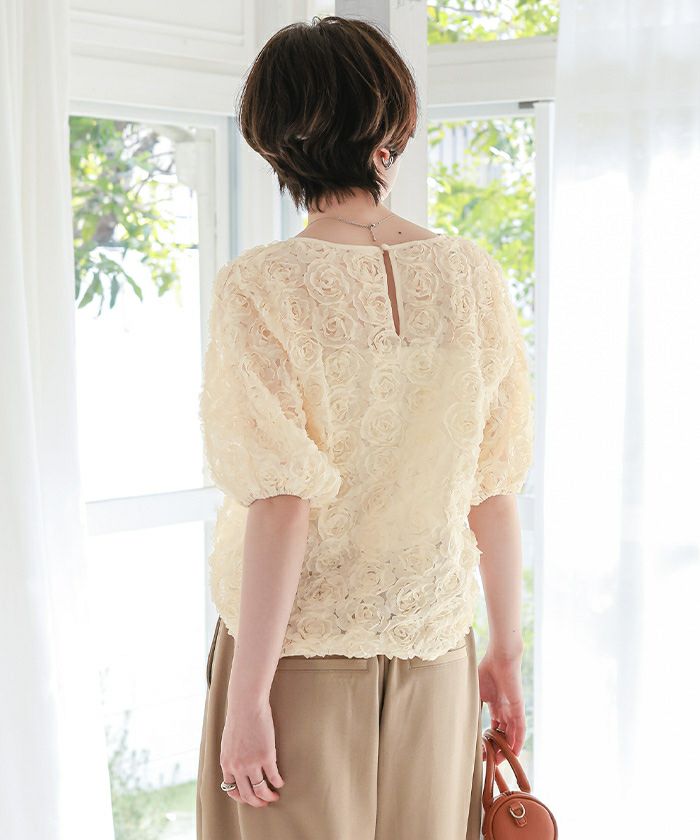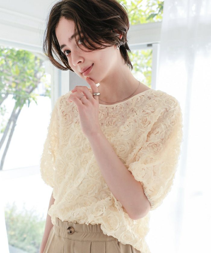 ・繊細なフラワーチュールが視線を惹きつける、着るだけで華やぐ主役トップス