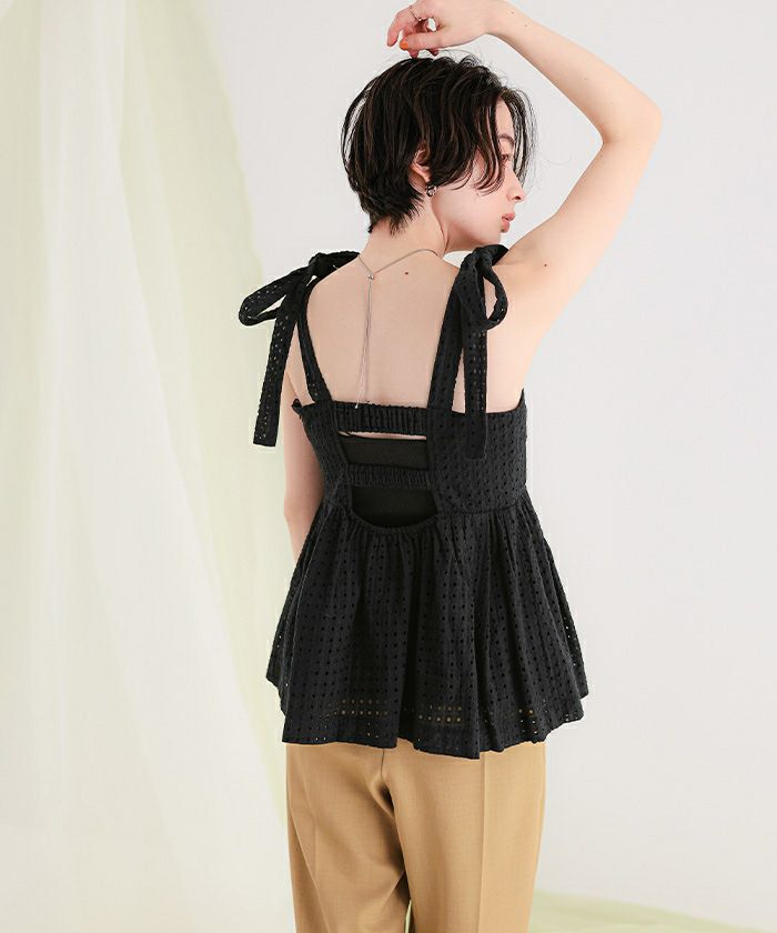 コットンレースペプラムリボントップス