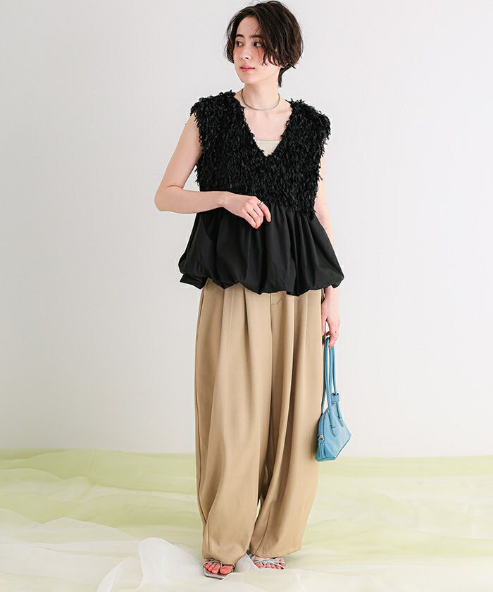 ・ふわっと揺れるフェザー素材が視線を引き寄せる、着るだけで華やぐ主役級ペプラムトップス