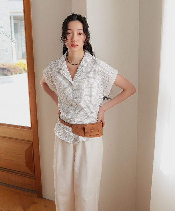 オープンカラーダブルボタン半袖シャツ【miette ミエット】【メール便可/100】