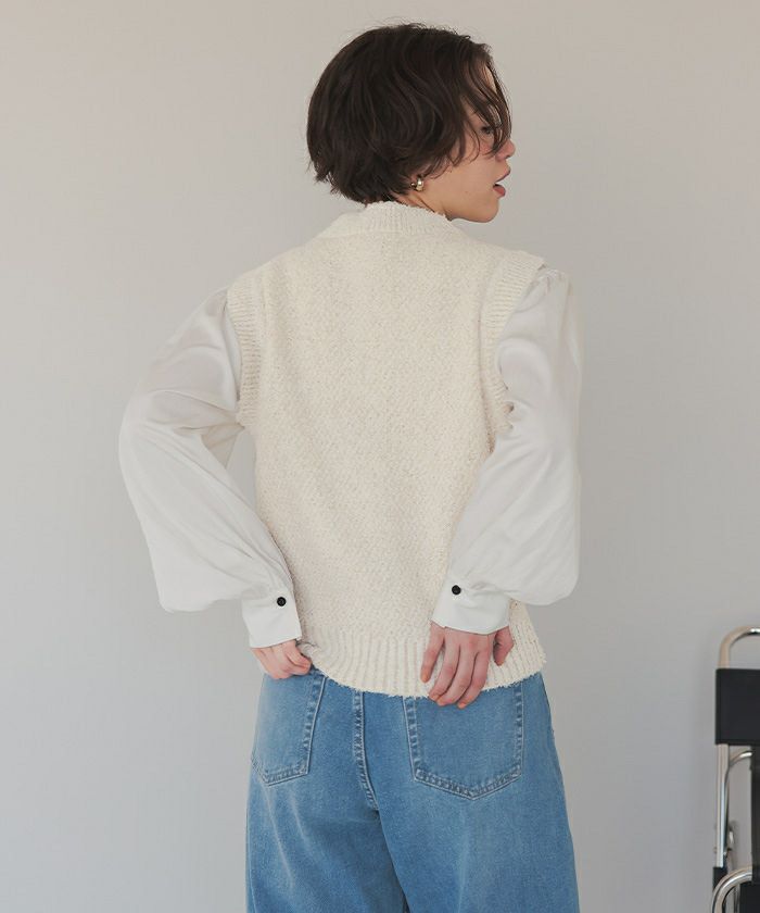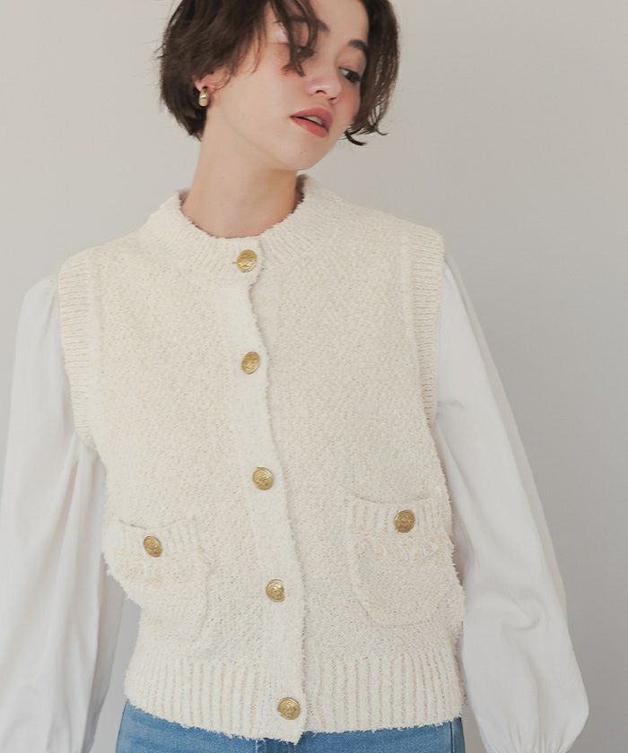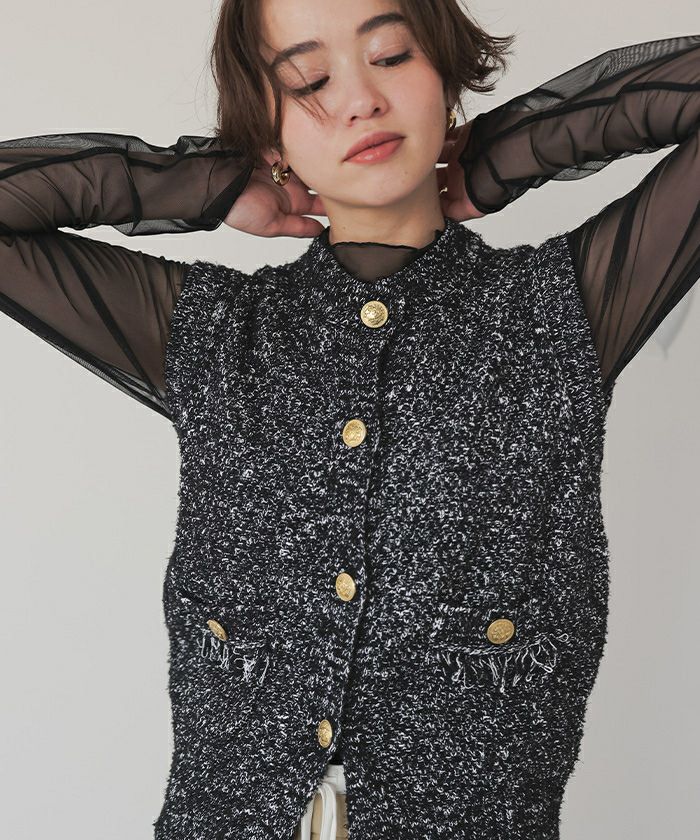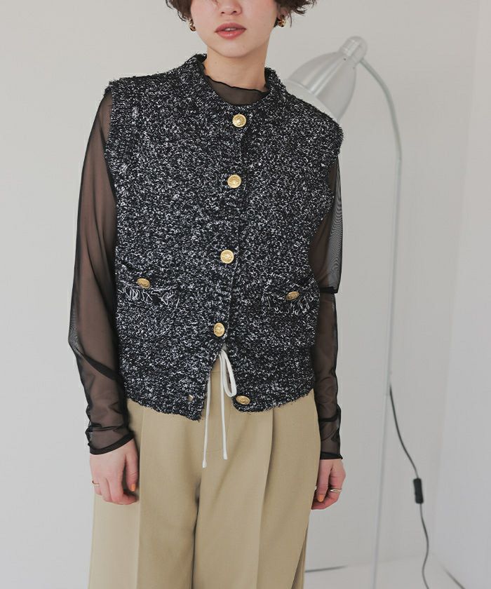 ゴールド釦ツイードニットベスト