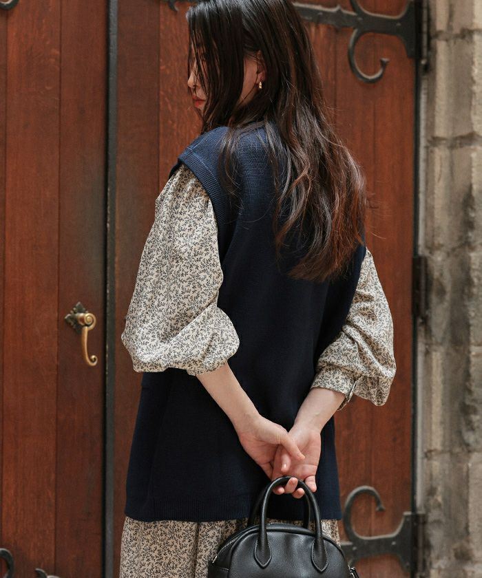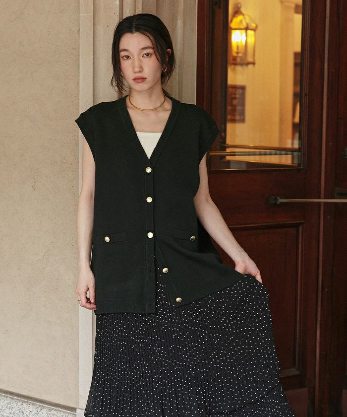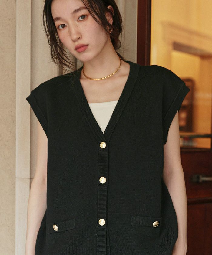 ・ゴールド釦がアクセントのオーバーサイズニットベスト