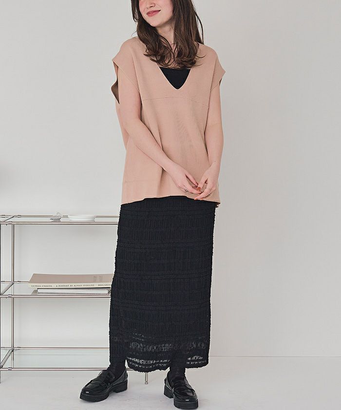 ・レイヤードアイテムとしても万能なニットベスト。