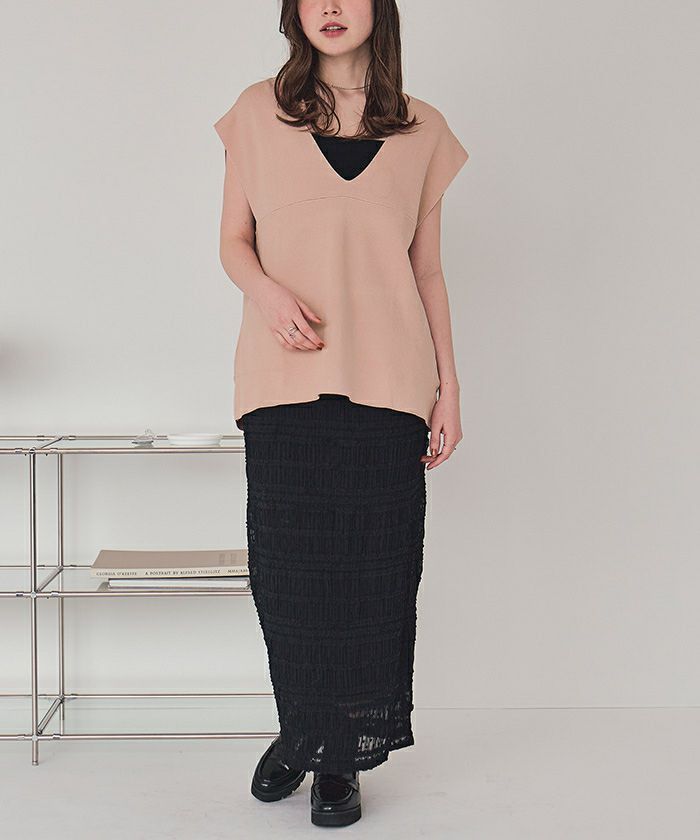 ・今の気分にぴったりなトレンドの深Vネックがポイント。