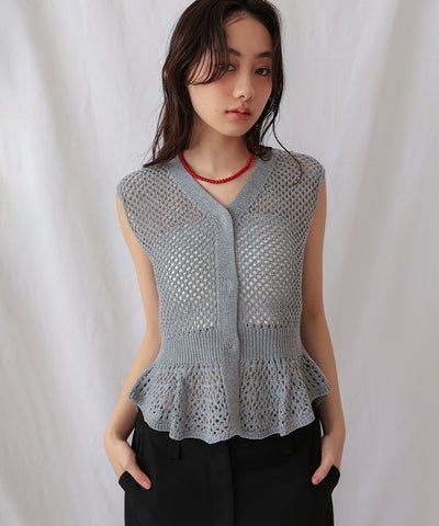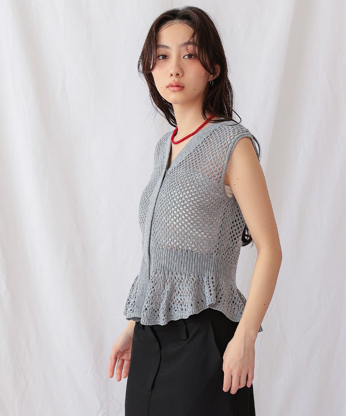 透かし編みノースリペプラムニット【miette ミエット】【メール便可/100】
