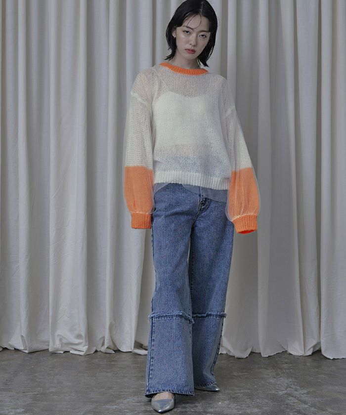 【miette】【期間限定★SALE】 袖口配色シアートップス【miette ミエット】【メール便可/60】