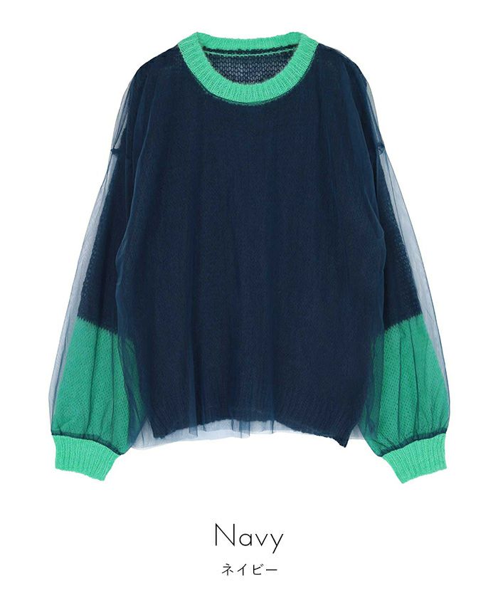 【miette】【期間限定★SALE】 チュールドッキングローゲージニット【miette ミエット】