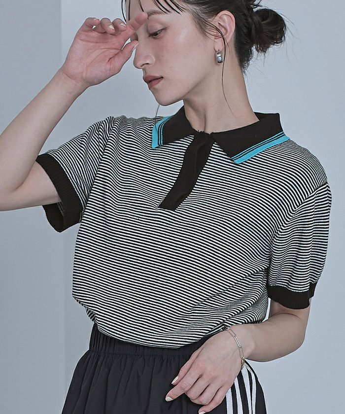 【miette】 ボーダーポロニットトップス【miette ミエット】