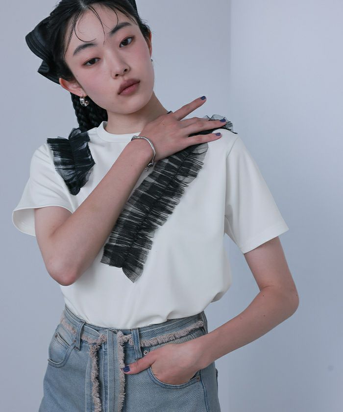 他の画像を見る □【miette】【期間限定★SALE】 チュールフリルプルオーバー【miette ミエット】【メール便可/25】 通常価格 ¥ 3,949 価格 ¥ 2,369 税込 お気に入りに登録する