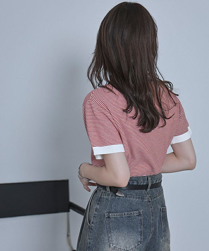 【miette】【期間限定★SALE】 配色ラインランダムリブトップス【miette ミエット】