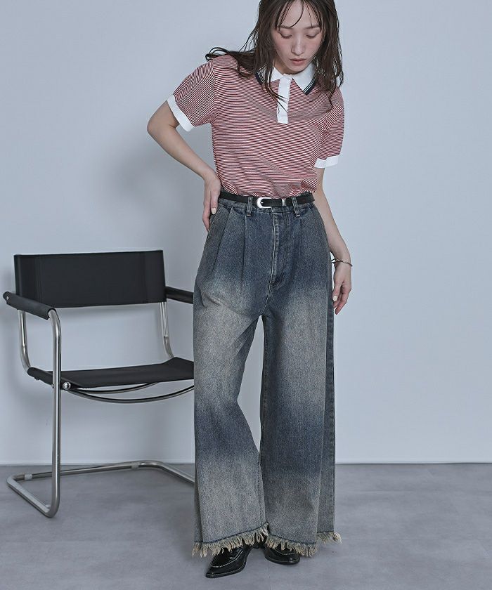 【miette】【期間限定★SALE】 襟付きフリンジニット【miette ミエット】