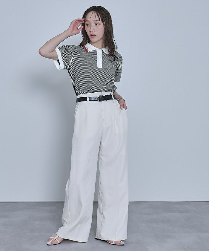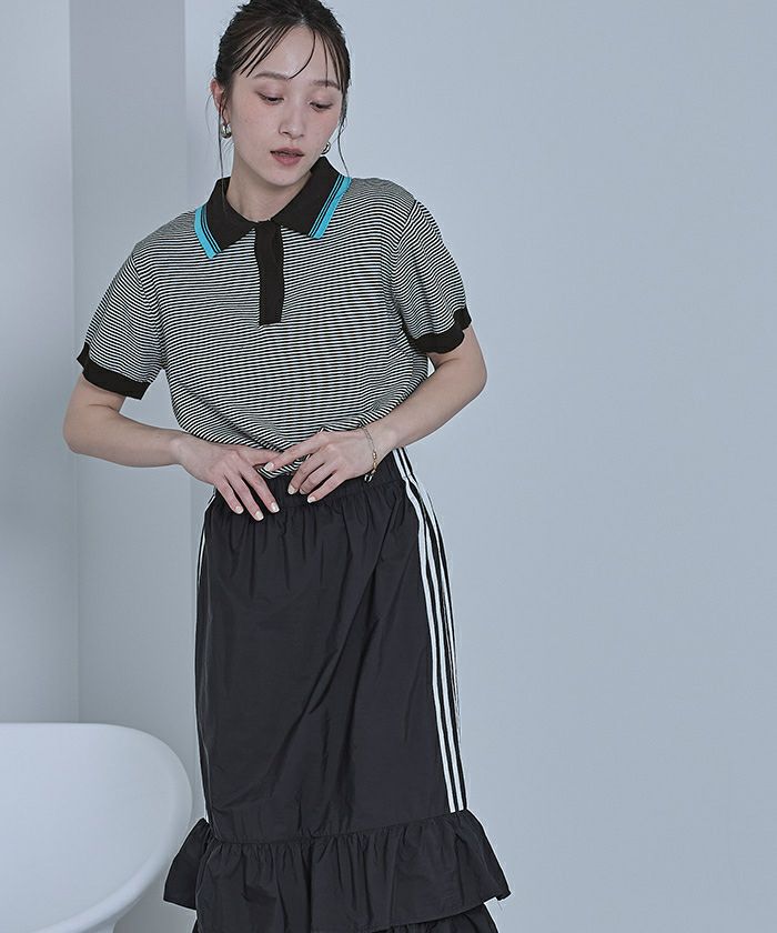 【miette】 ボーダーポロニットトップス【miette ミエット】