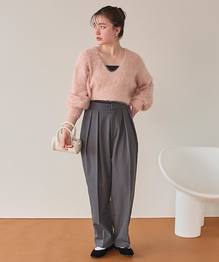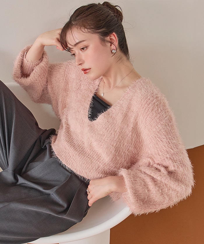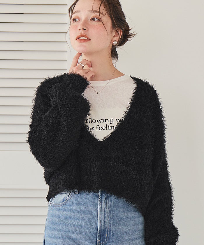 【IGTV】 【titivate】【期間限定★SALE】 ポコポコシャギーオーバーサイズVネックニット