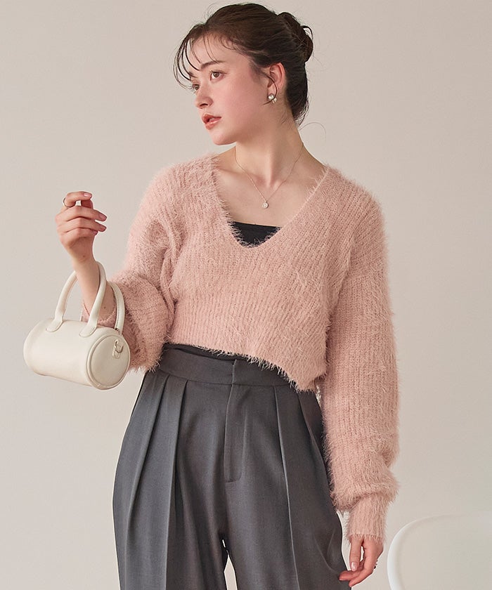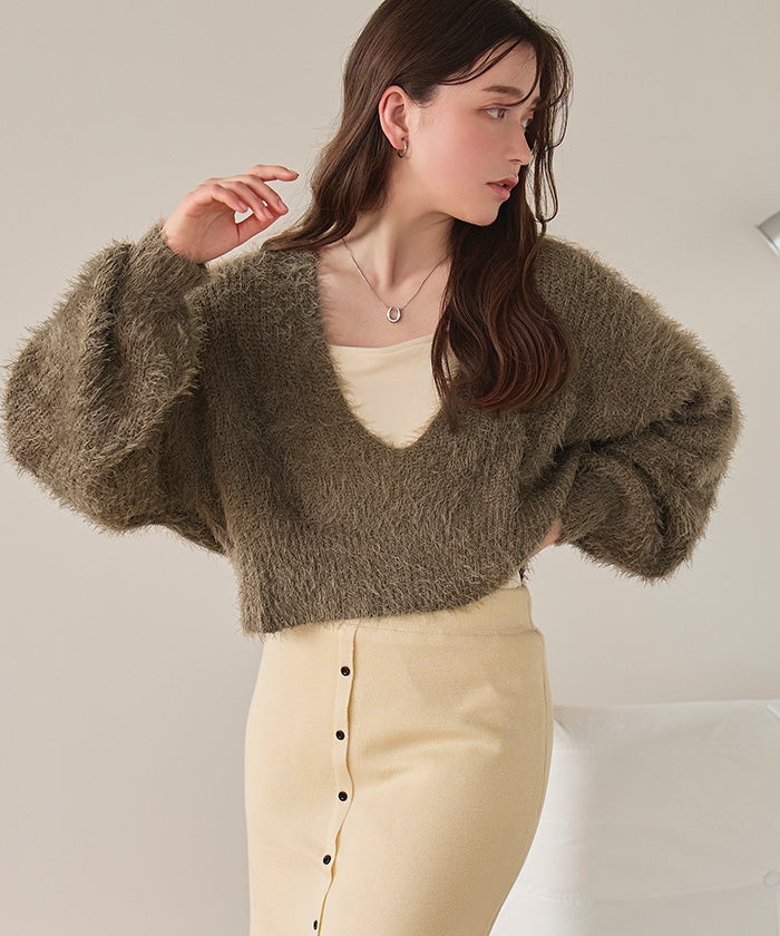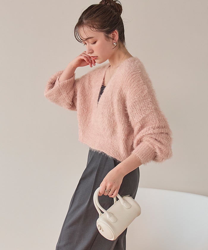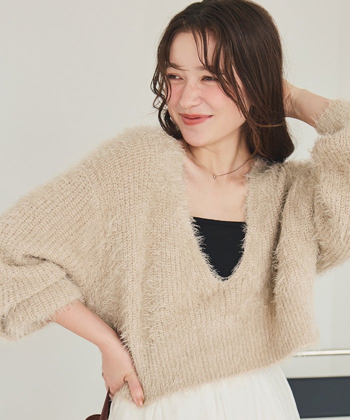 【IGTV】 【titivate】【期間限定★SALE】 クルーネックミニシャギーニットカーディガン