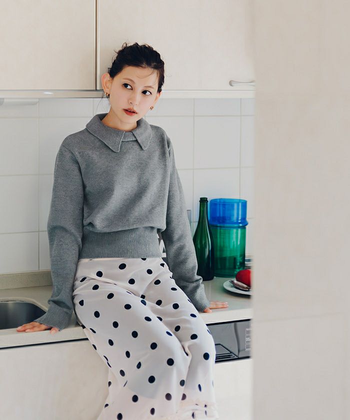 【miette】【人気インフルエンサー菅沼ゆりさんコラボ】 襟付きショートニット【miette ミエット】