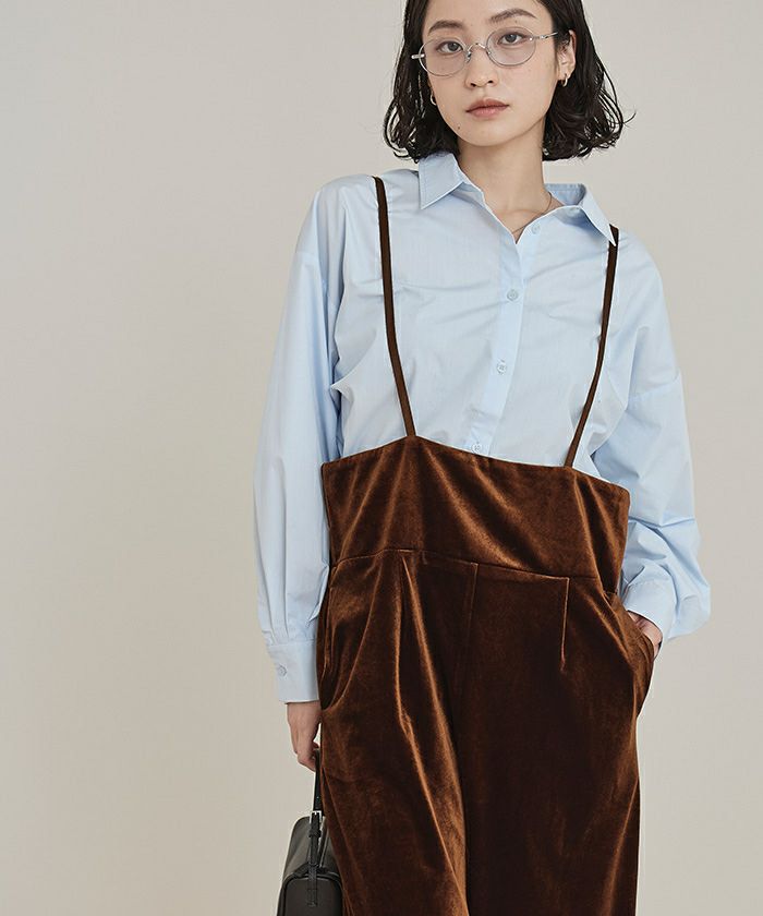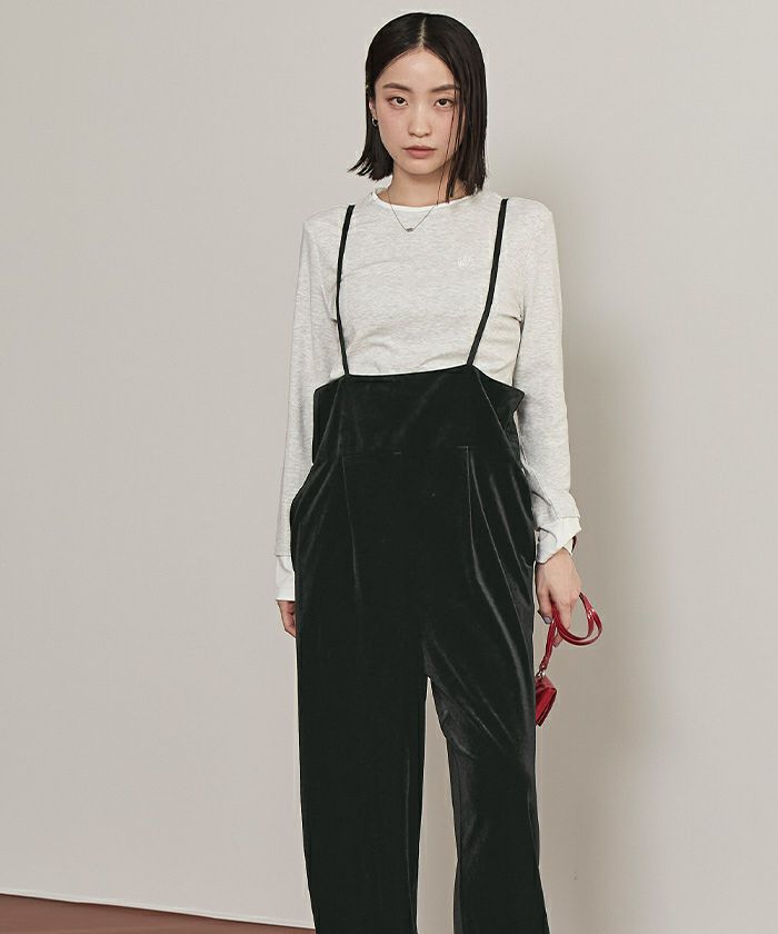 【低身長さん向けサイズ有り】【titivate】 フロントファスナーデザインデニムキャミソールサロペット