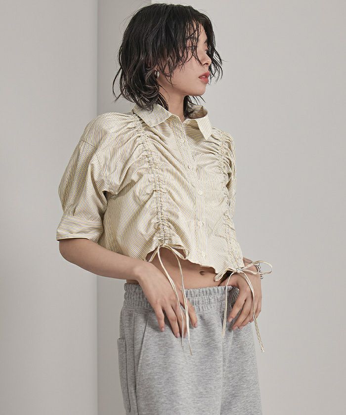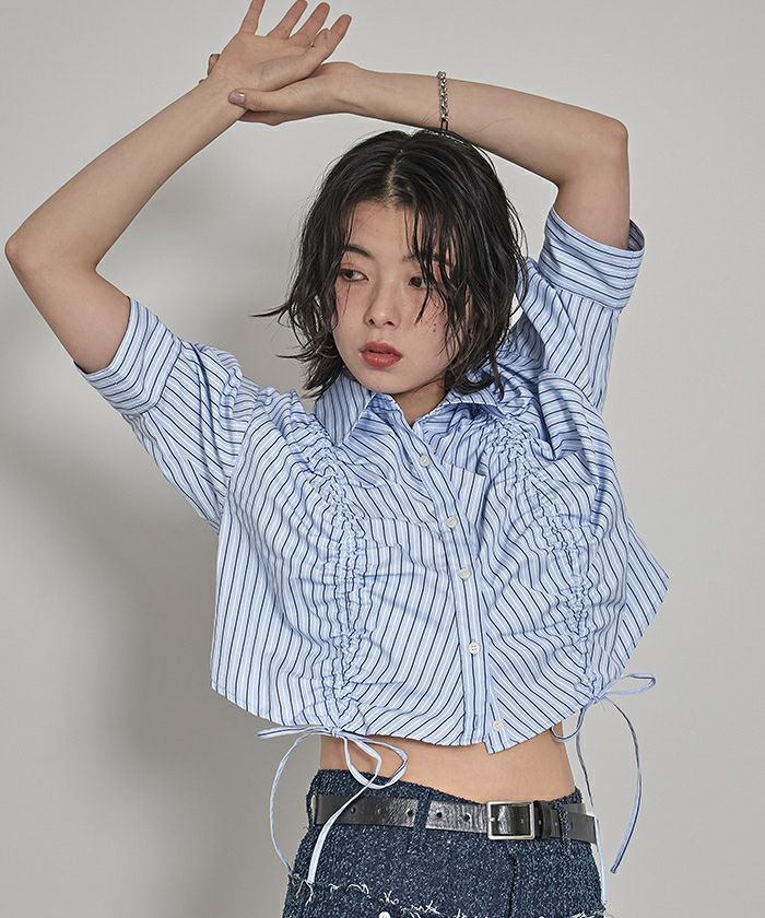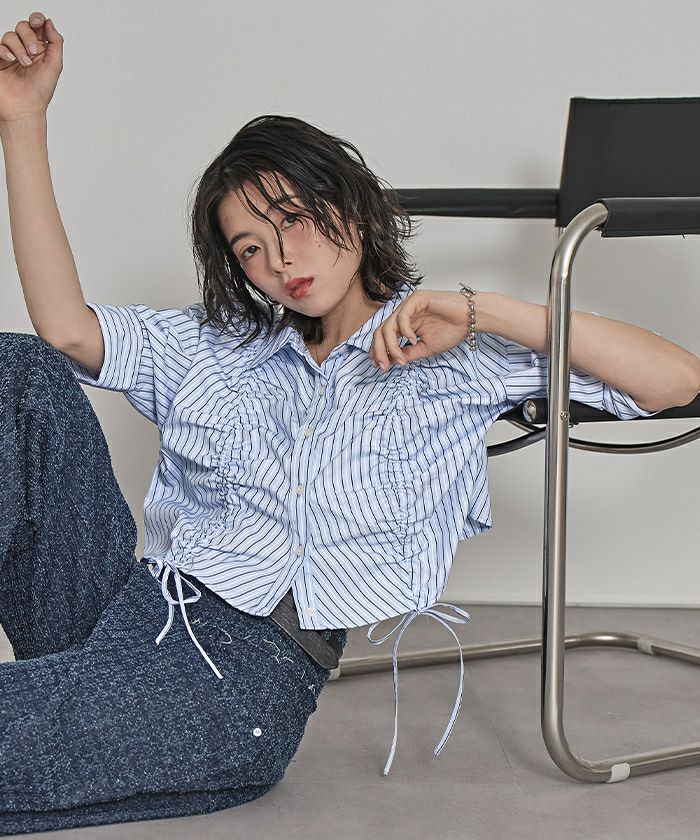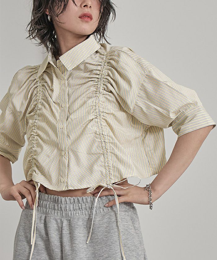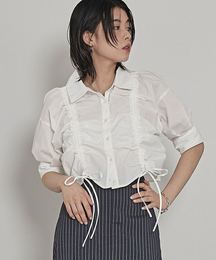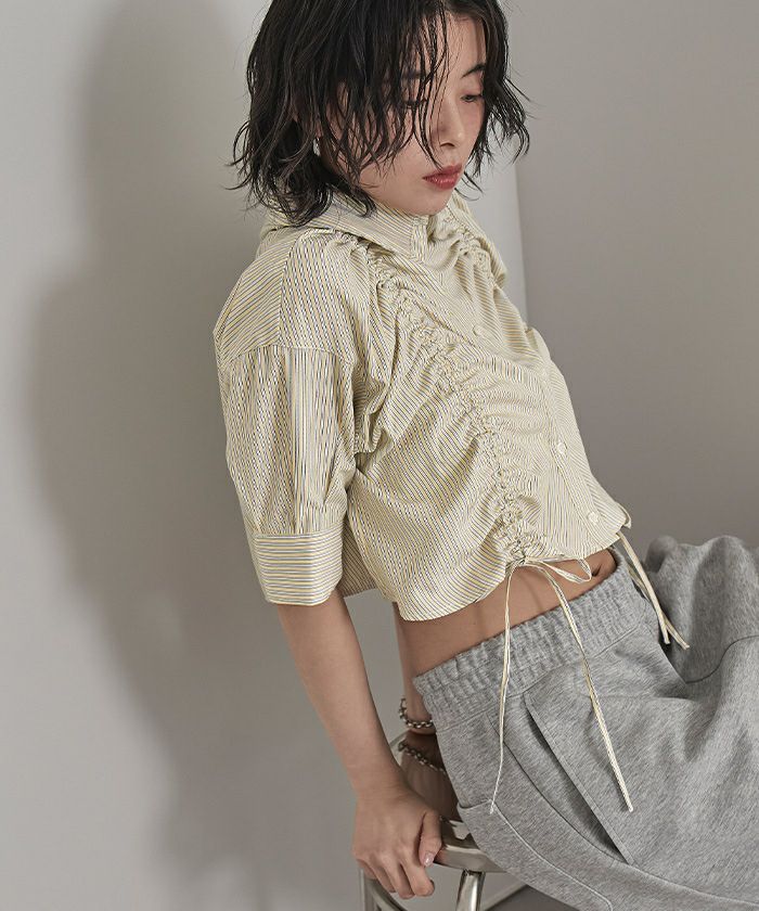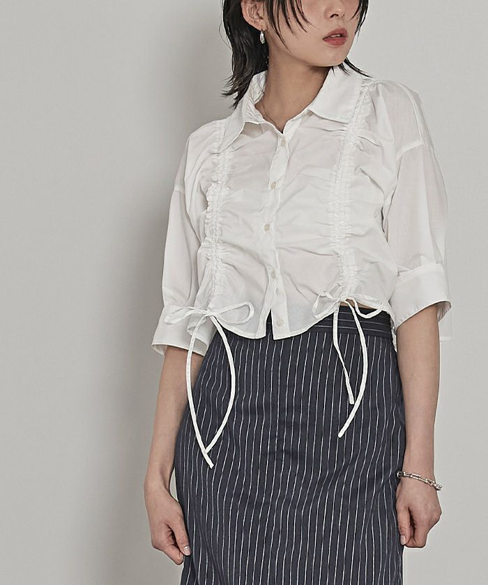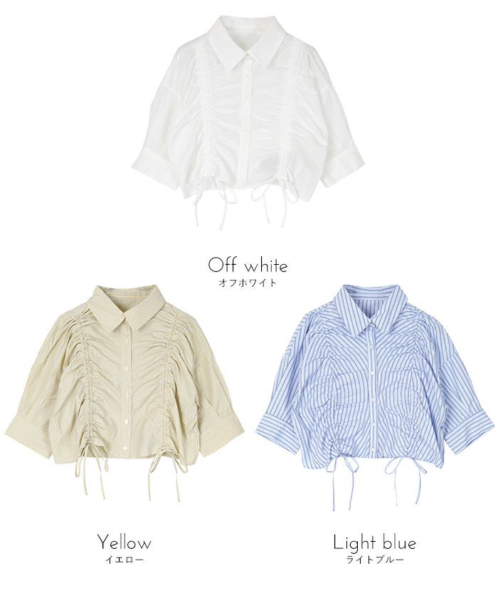 他の画像を見る 【miette】【期間限定★SALE】 フロントシャーリング5分袖シャツ【miette ミエット】【メール便可/100】 通常価格 ¥ 3,949 価格 ¥ 1,974 税込 お気に入りに登録する