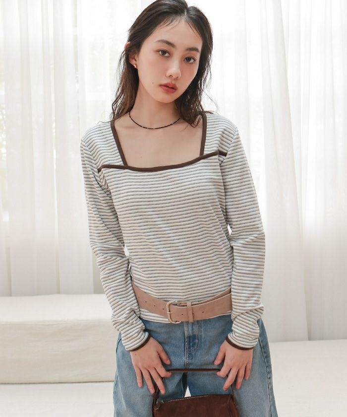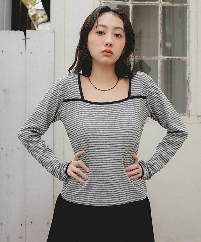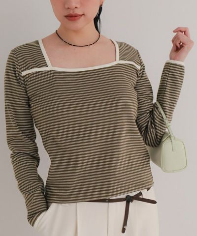 ・カジュアルなボーダー柄に、デコルテを美しく見せる上品さを添えるネックライン