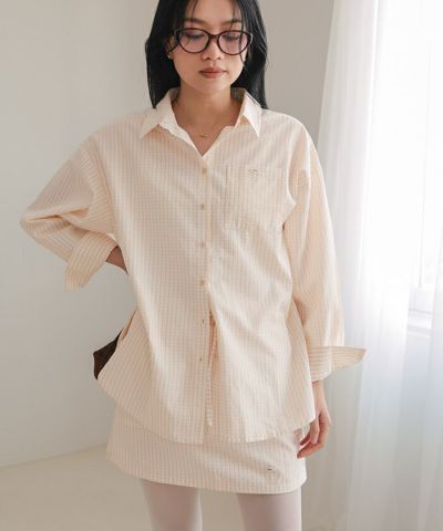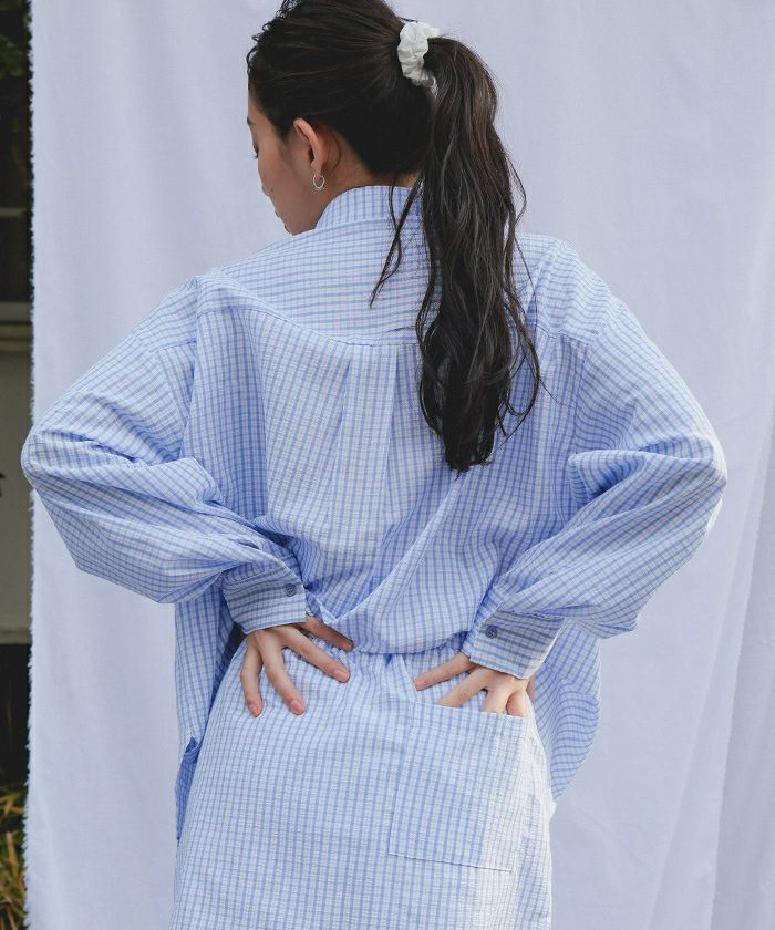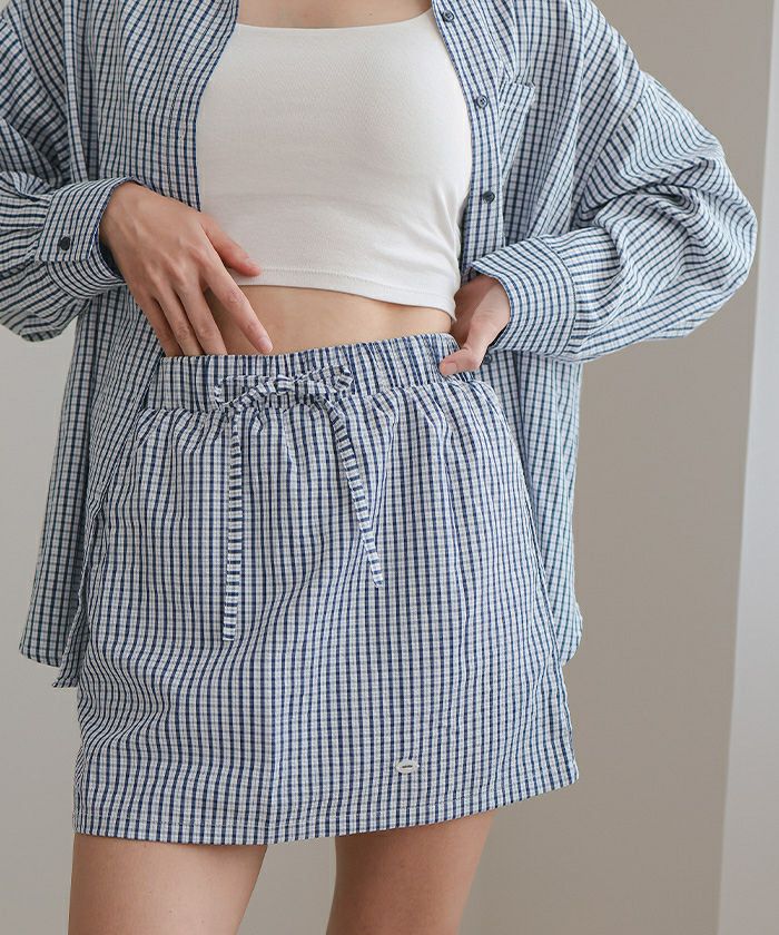 商品情報 ・清涼感のあるチェック柄サッカー生地を使用した、サッカーチェックシャツスカートセット