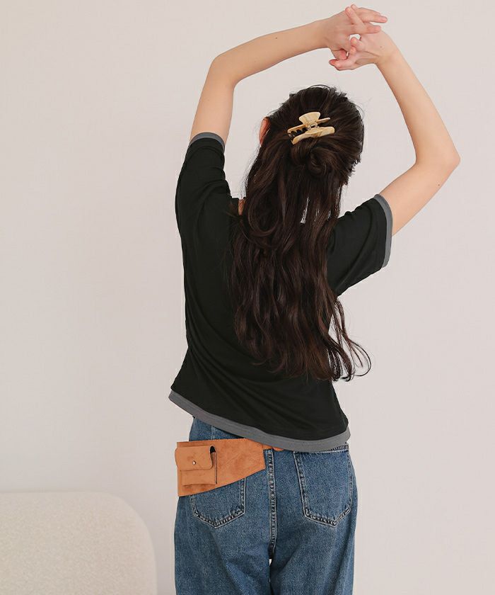 レイヤード風ヘンリーネック半袖トップス【miette ミエット】【メール便可/100】