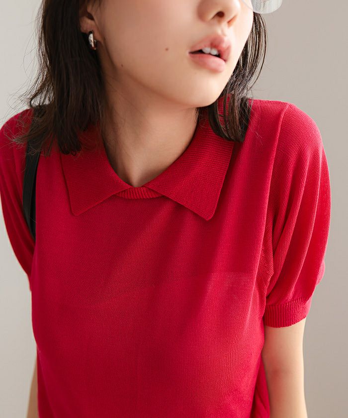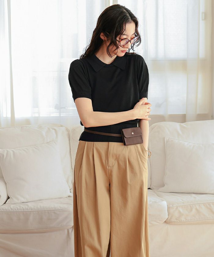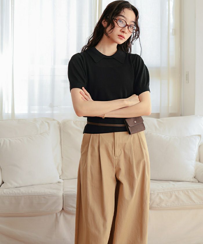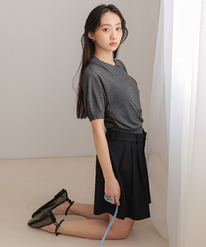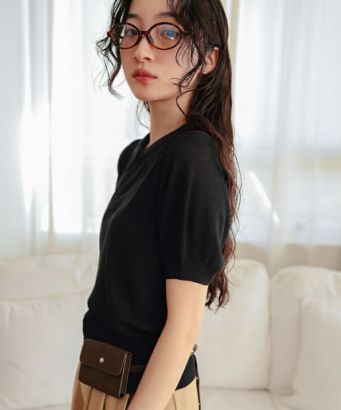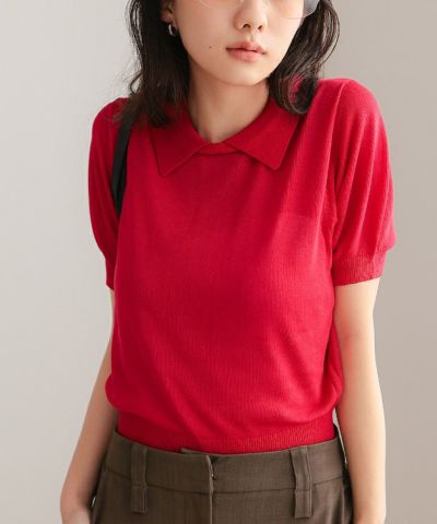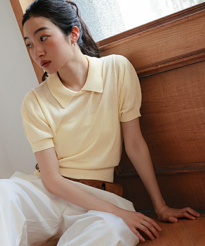・シンプルながらも襟デザインがポイントの半袖ニット