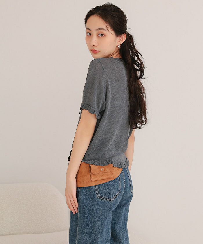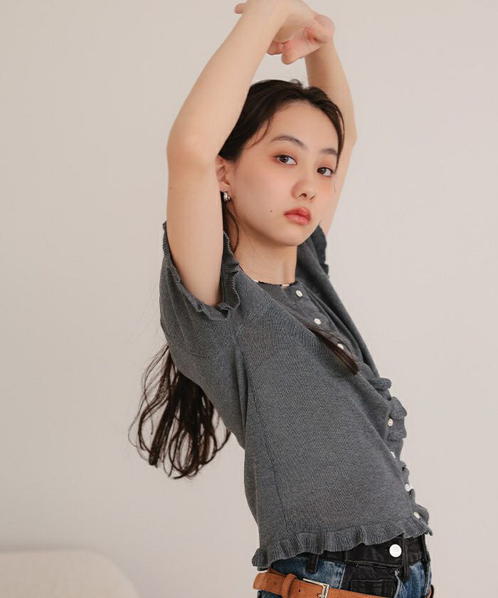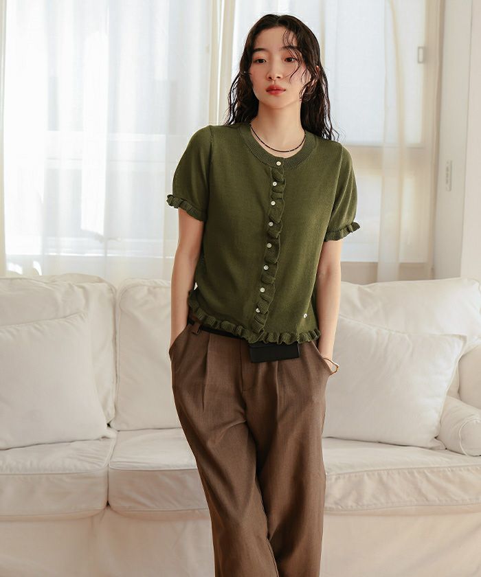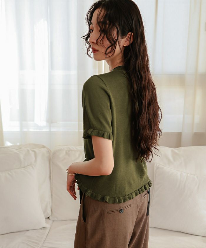 フリルデザイン半袖ニットカーディガン【miette ミエット】【メール便可/100】