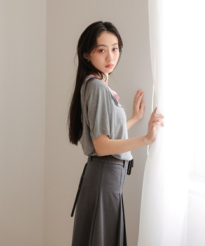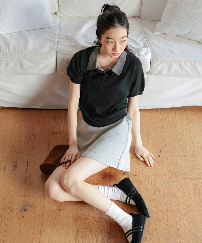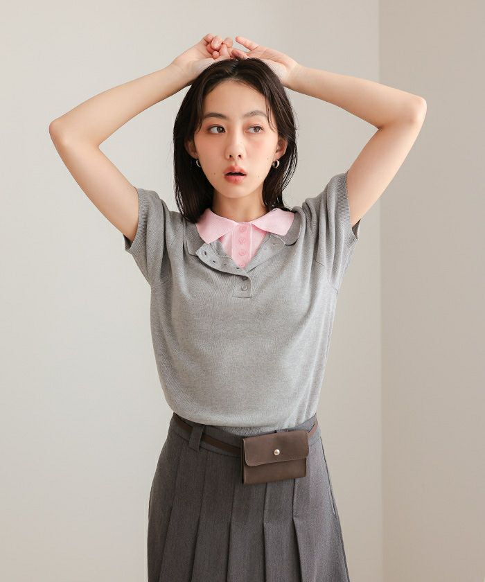 レイヤード風半袖ポロニット【miette ミエット】【メール便可/100】