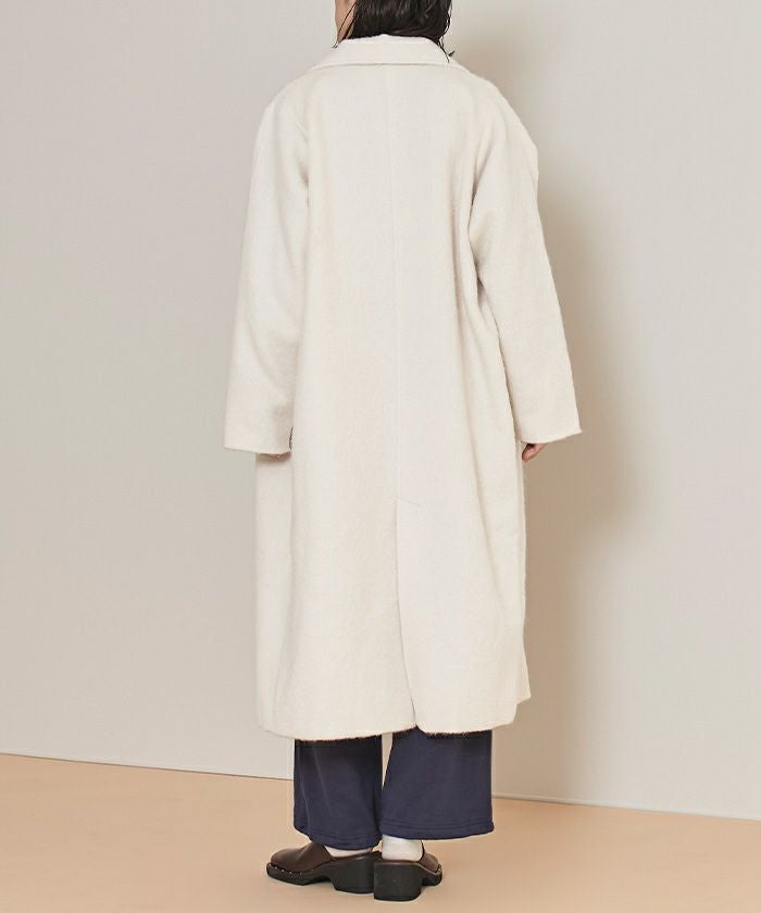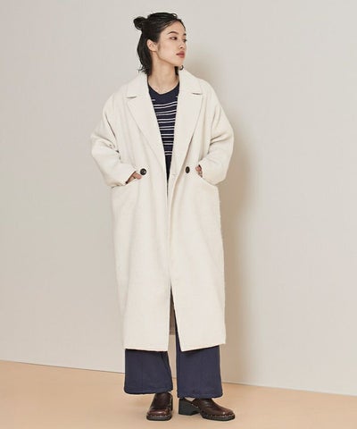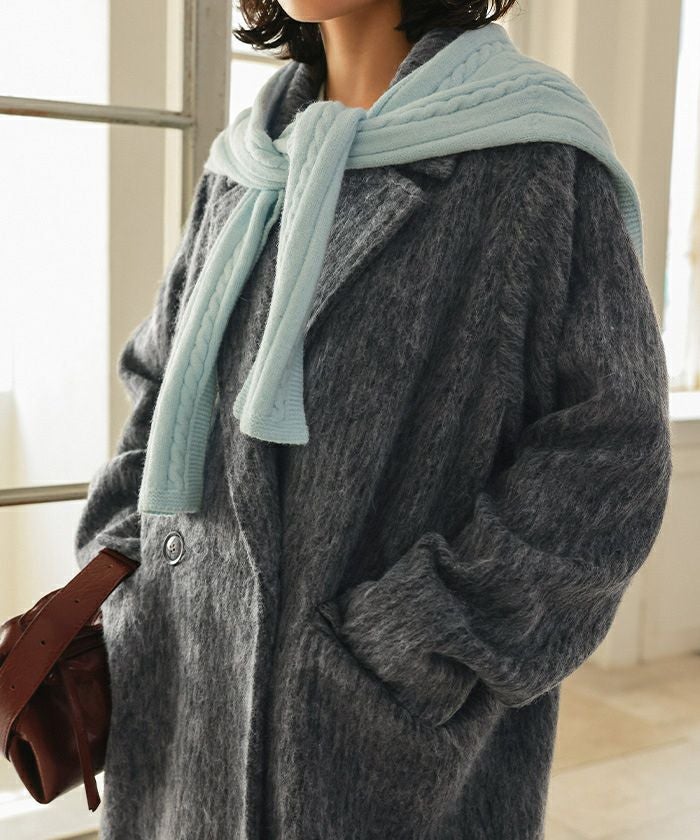 ・クラシックなチェスターコートを、毛足のある柔らかなシャギー素材でアップデート