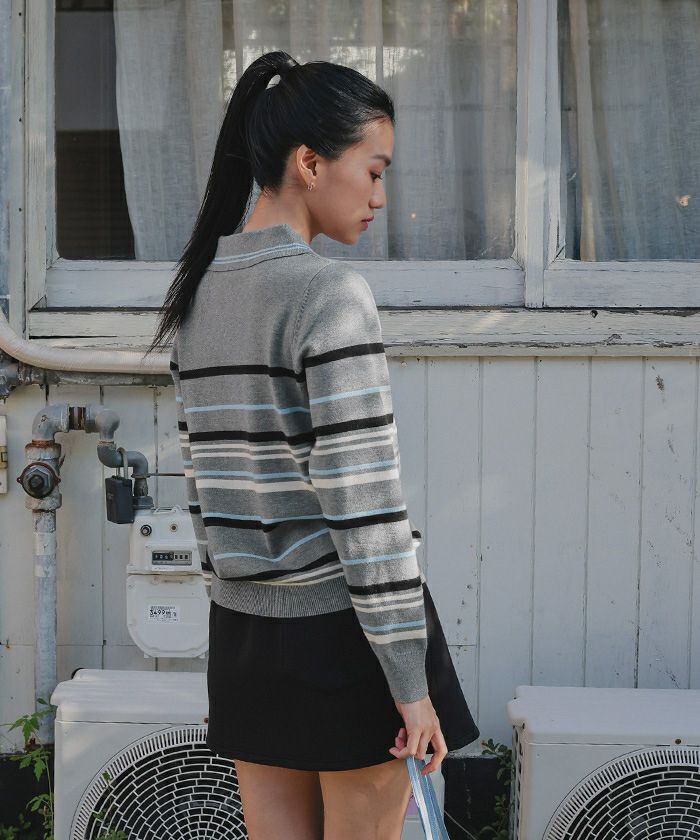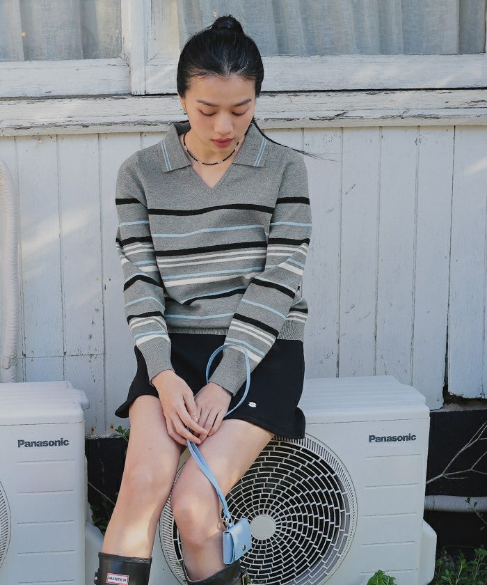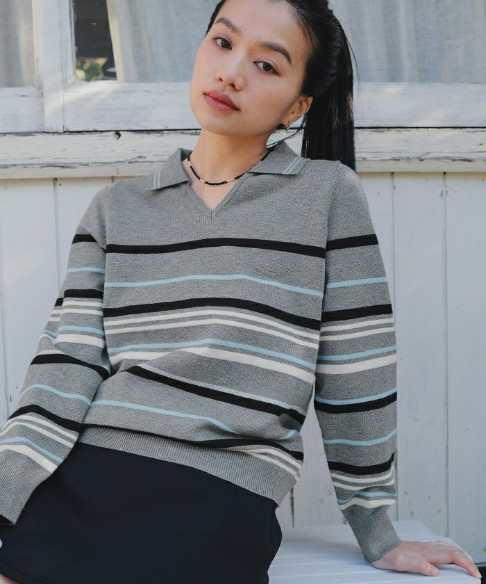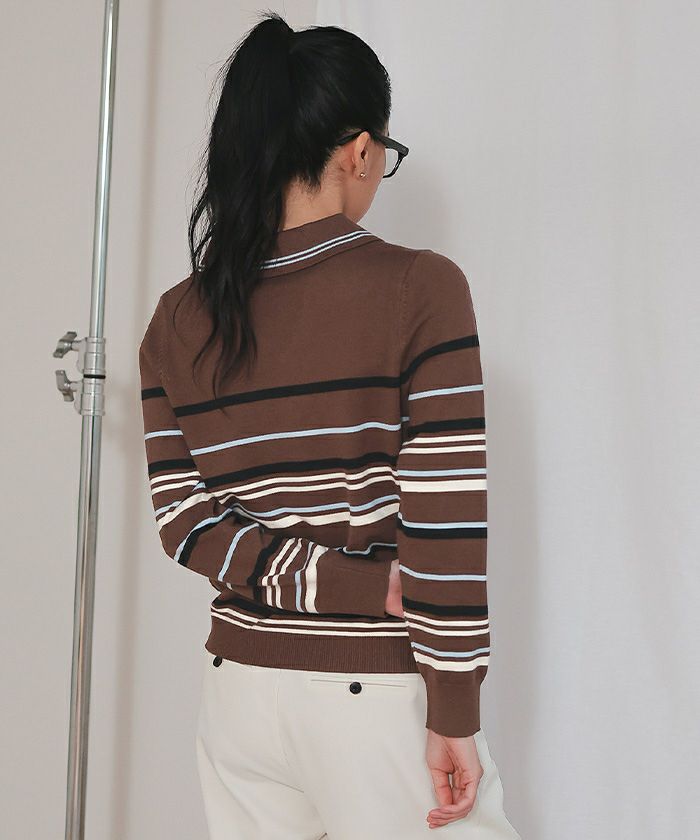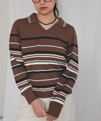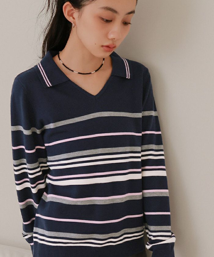 商品情報 ・1枚着るだけで華やかな配色のスキッパーマルチボーダーニット