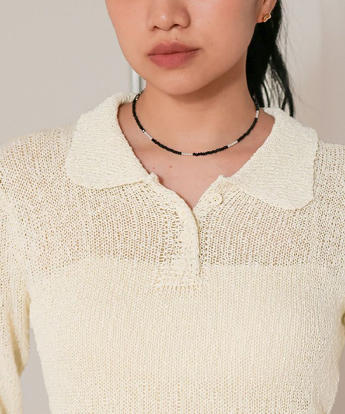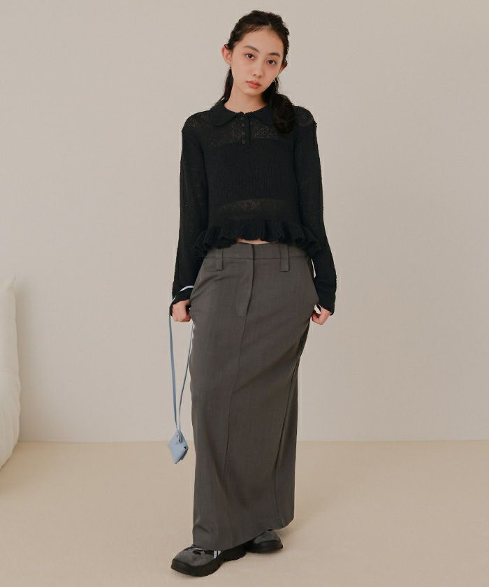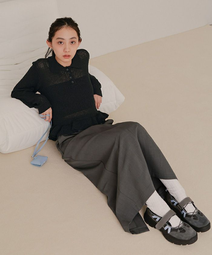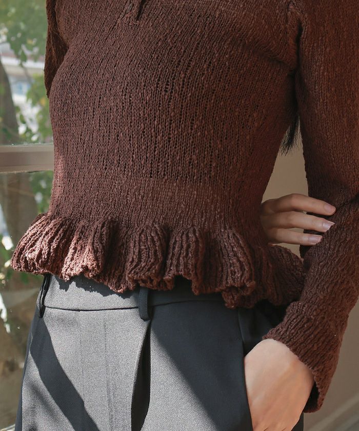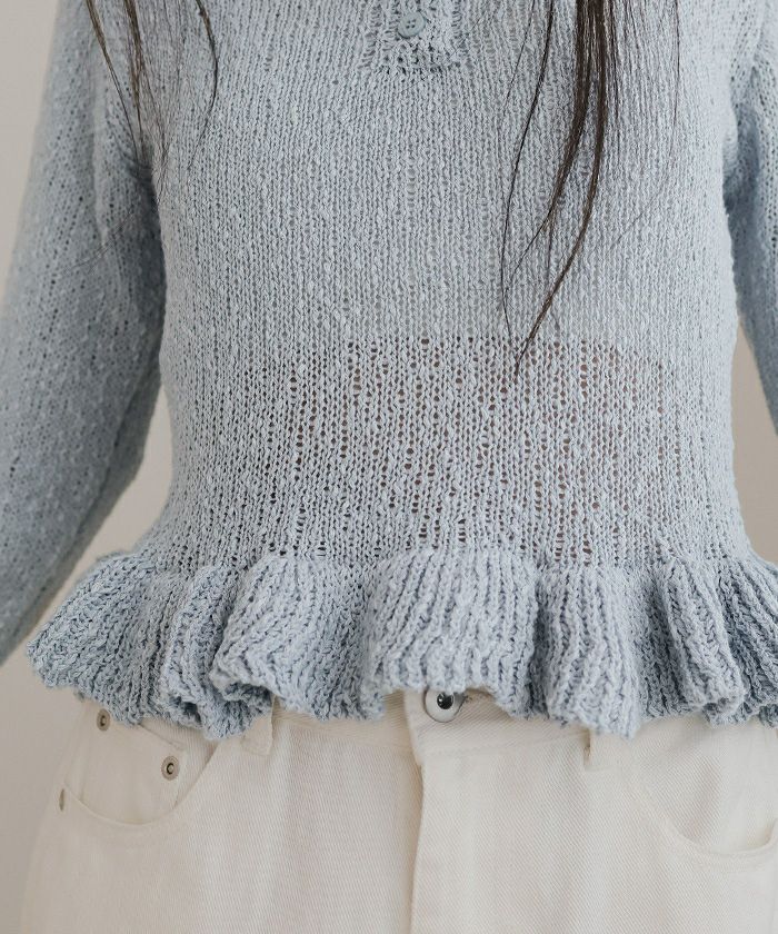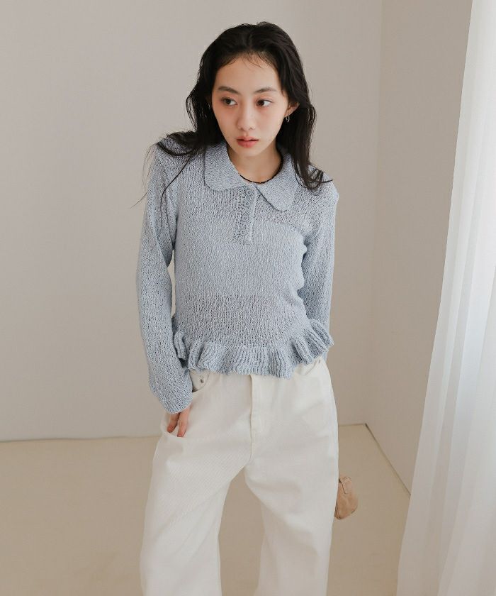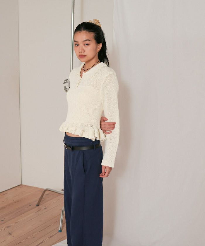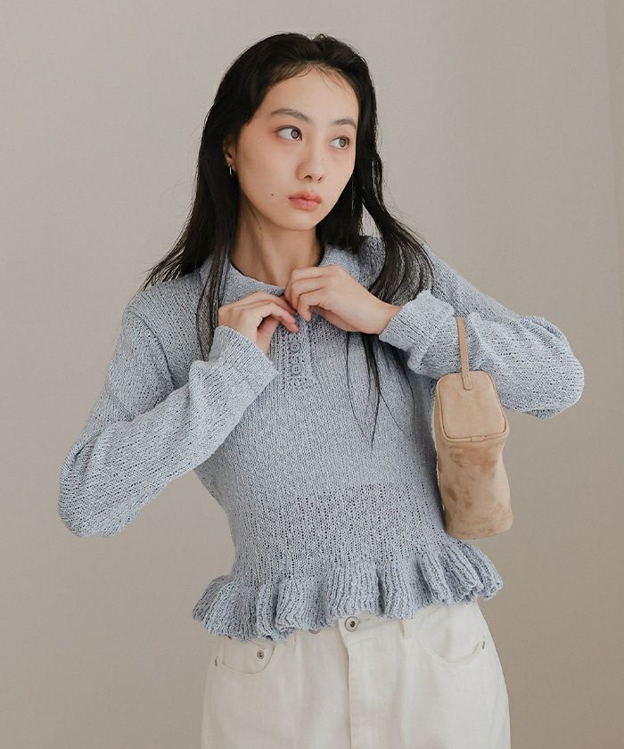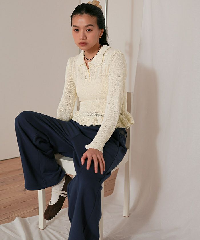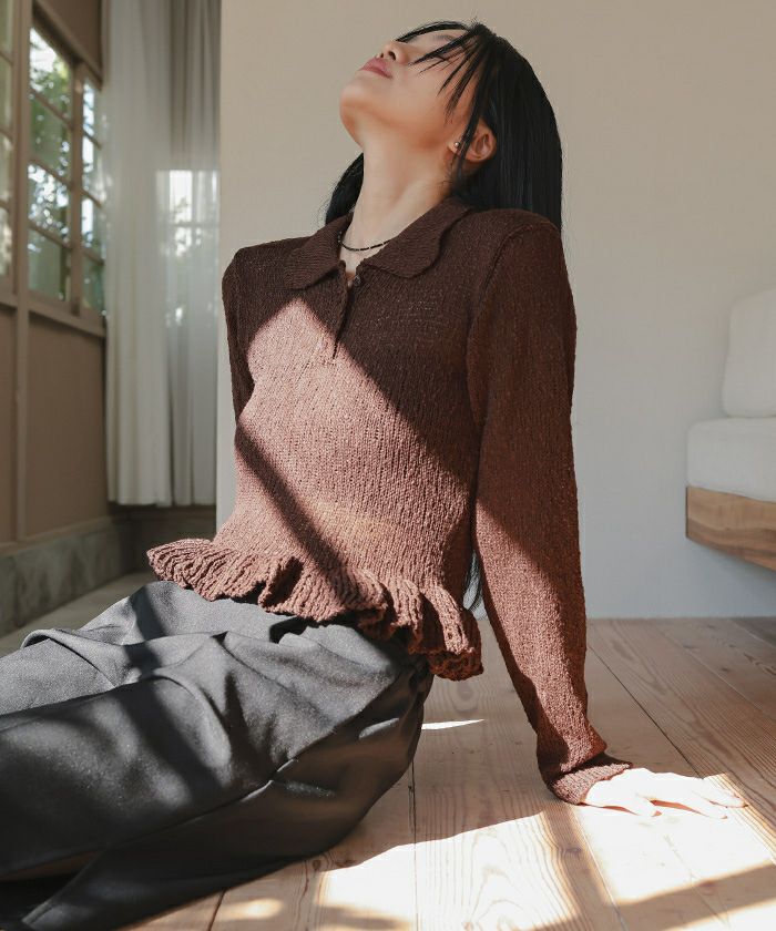 透かし編み裾フリルポロニット【miette ミエット】