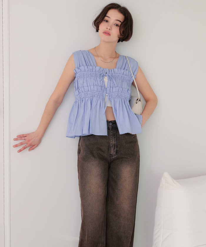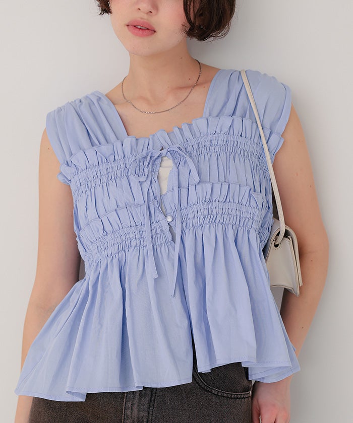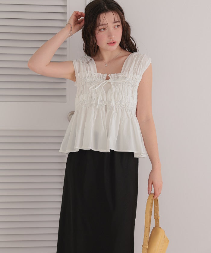 他の画像を見る 【新作★期間限定20%OFF★10日11時カラ】【titivate】 シャーリングノースリーブブラウス 通常価格 ¥ 3,949 価格 ¥ 3,159 税込 販売開始前です。 販売期間 2026/04/10 11:00 〜 2026/04/17 10:59 お気に入りに登録する