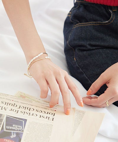 ・パールが女性らしい2連デザインのブレスレット。