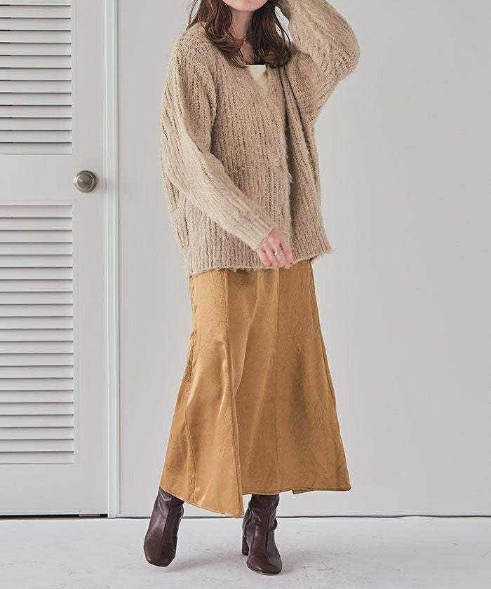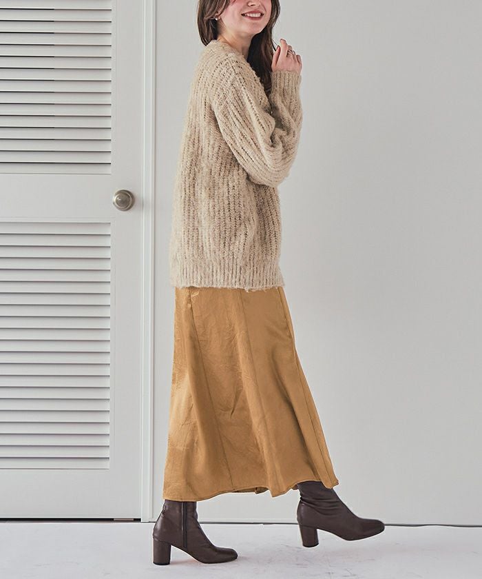 ・大人カジュアルなシルエットが魅力のセミマーメイドサテンスカート。