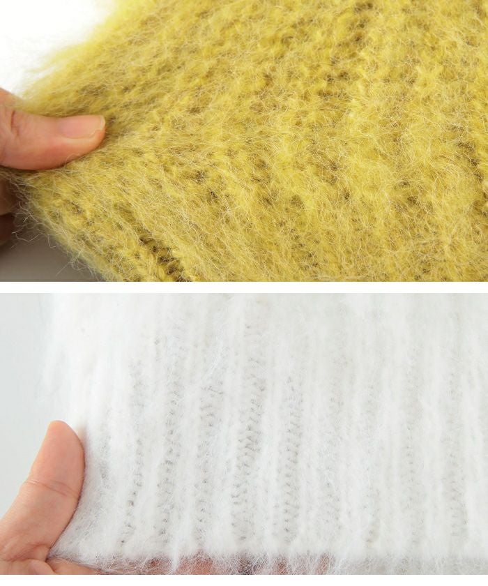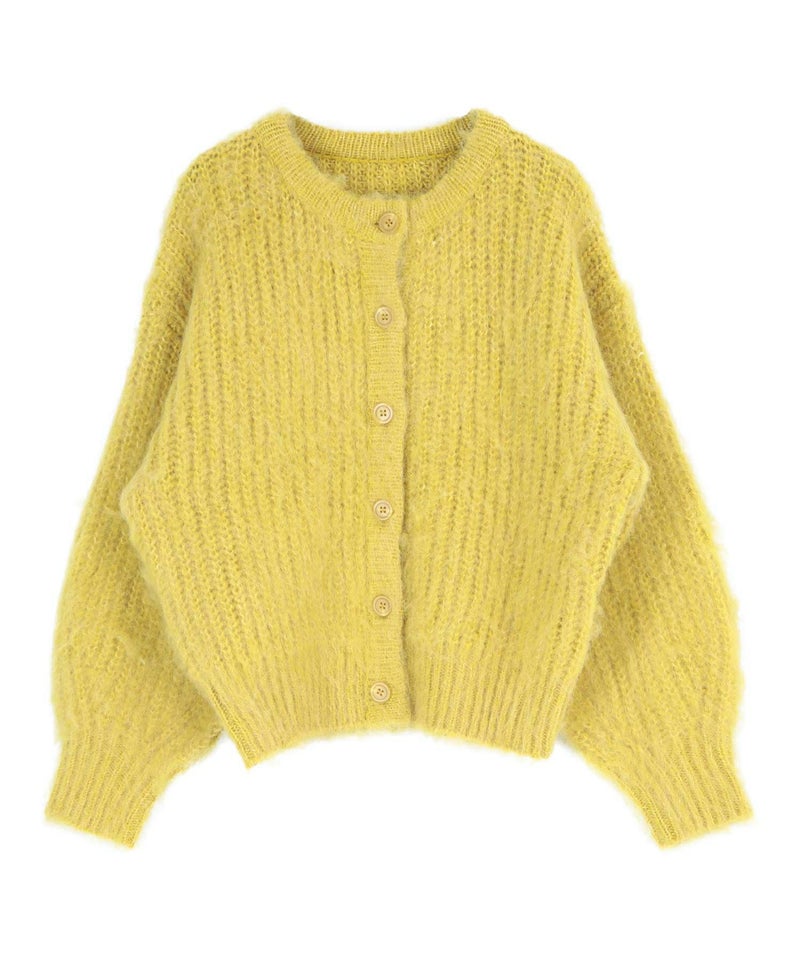 ・ふわっとした起毛の表面感が可愛いクルーネックの長袖カーディガン。