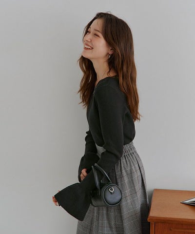 ボートネックベルスリーブニット