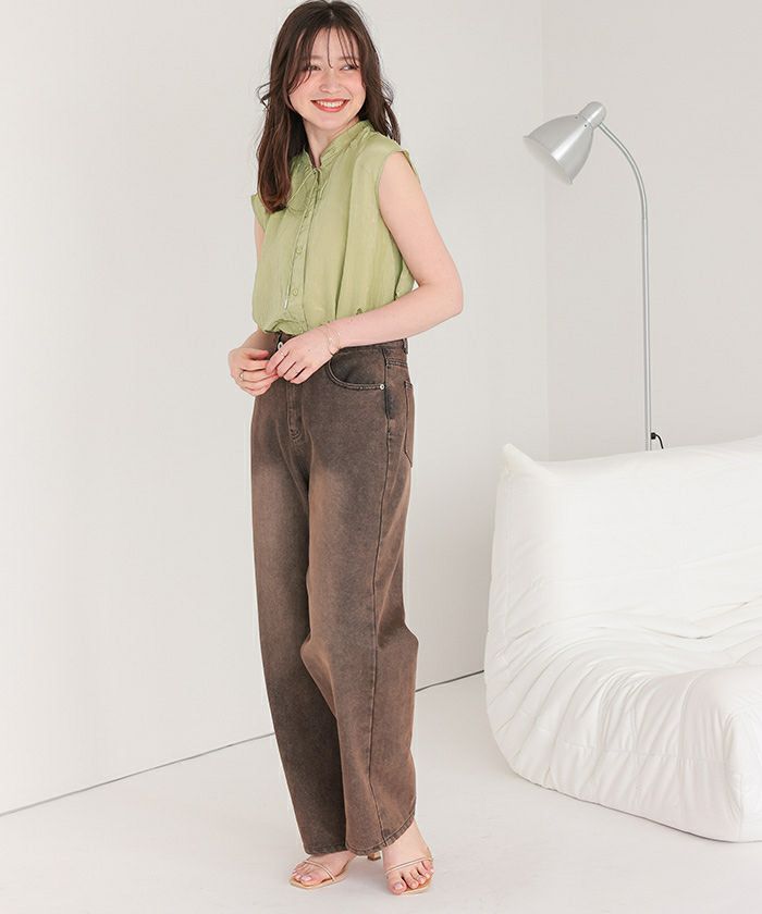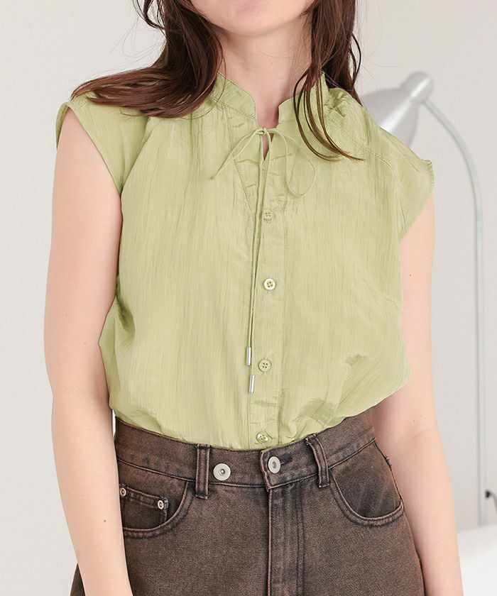・微光沢感と軽やかな素材の動きが、暑い季節にも1枚で映えるブラウス。