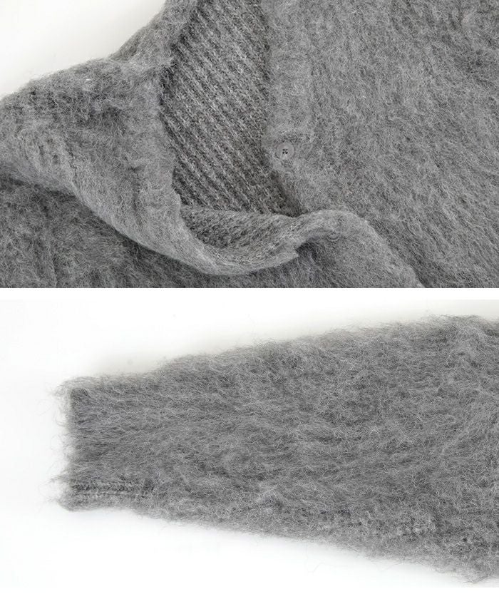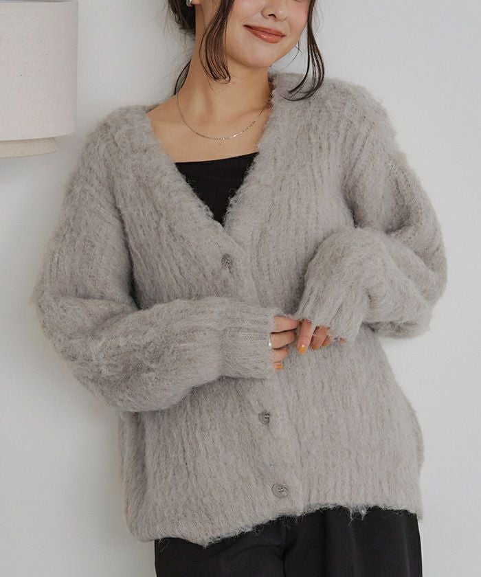 モヘアライクVネックシャギーニットカーディガン