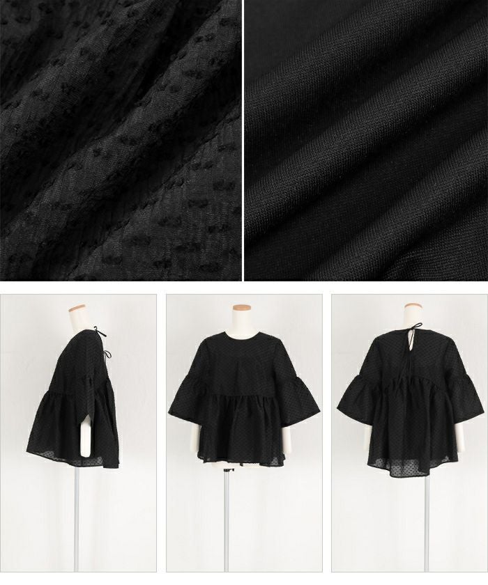 ・表面感が特徴的なシアー素材が映えるバックリボントップス