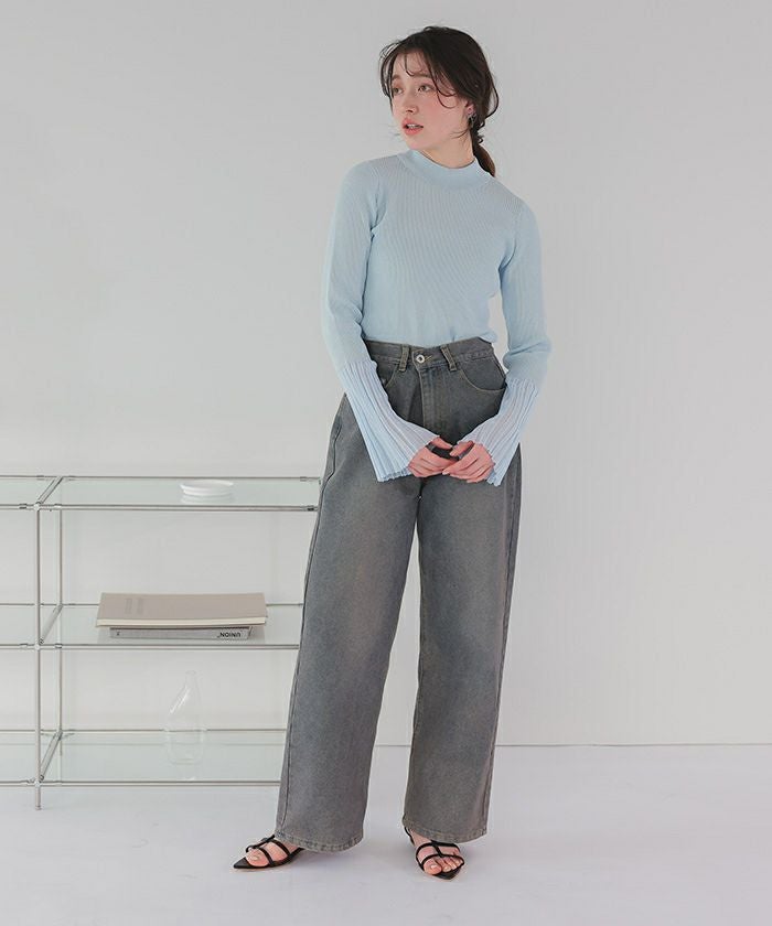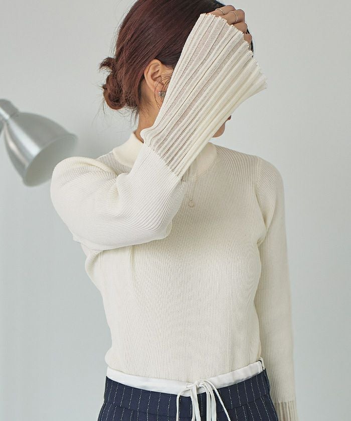 麻タッチ袖シアーハイゲージニット