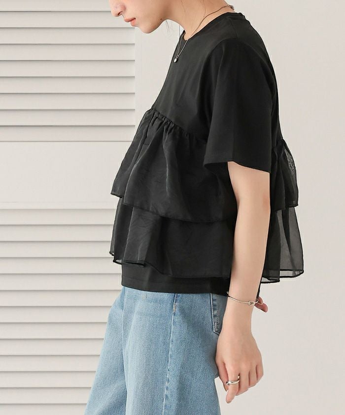 オーガンジーフリルドッキングTシャツ
